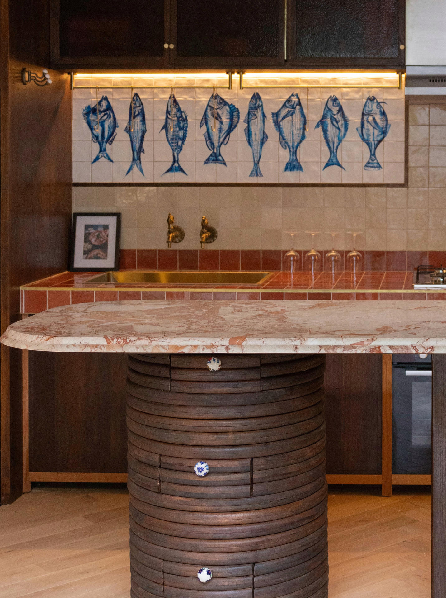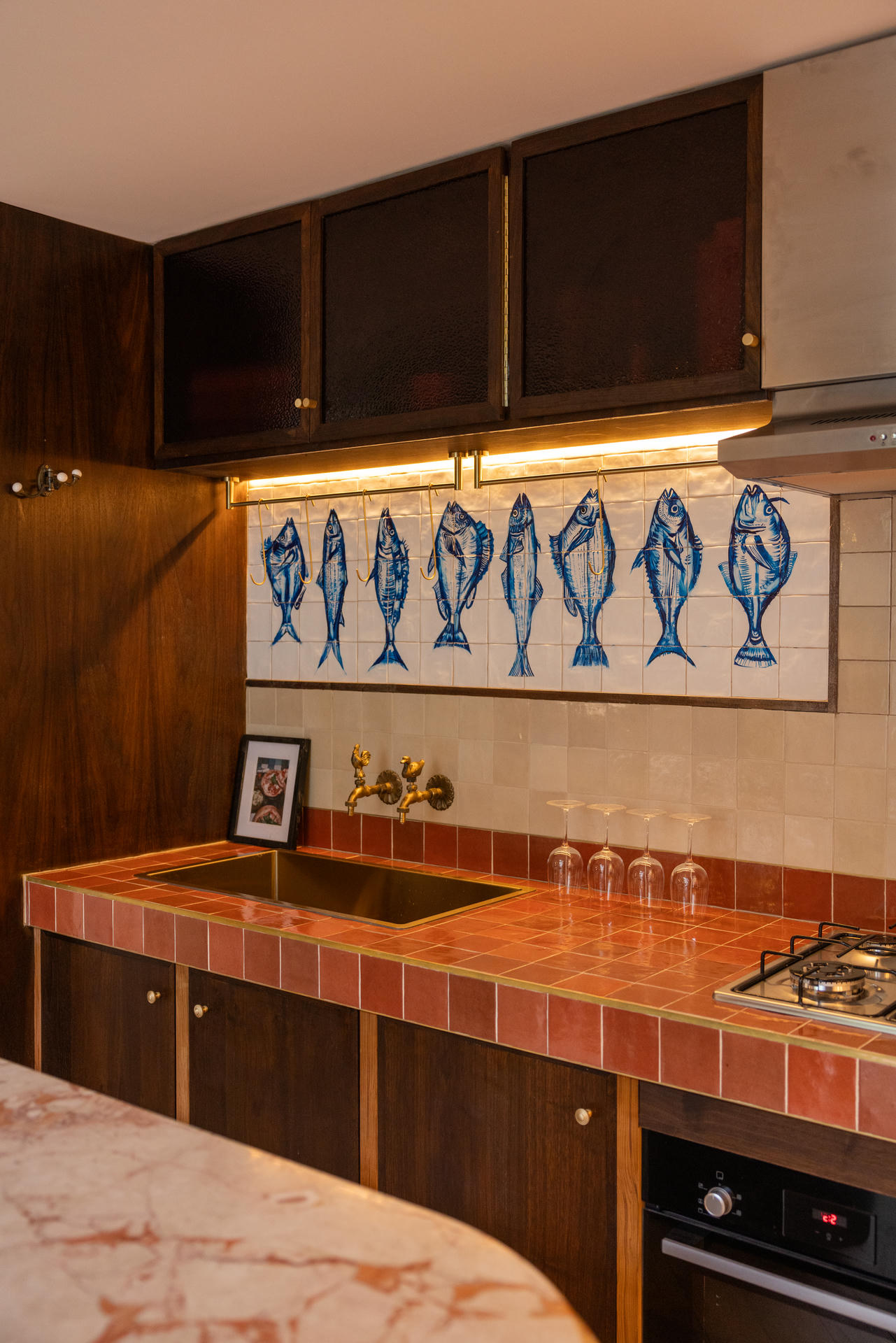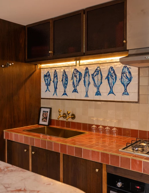 Hiszpańskie inspiracje pojawiają się w detalach: w wyrazistych wzorach płytek, w strukturze ścian czy w ręcznie wykonanych elementach wykończenia.