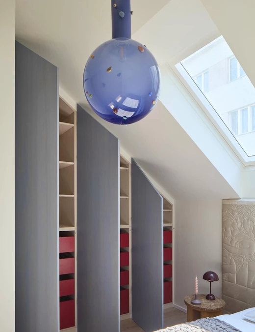 Ważnym elementem całego projektu była współpraca z czeskimi producentami, rzemieślnikami i młodymi twórcami. Zamiast traktować sztukę jako dodatek, architektki zdecydowały się zintegrować ją z wnętrzem. Ograniczona powierzchnia ścian pod skosami sprawiła, że część prac powstała specjalnie dla tego apartamentu.