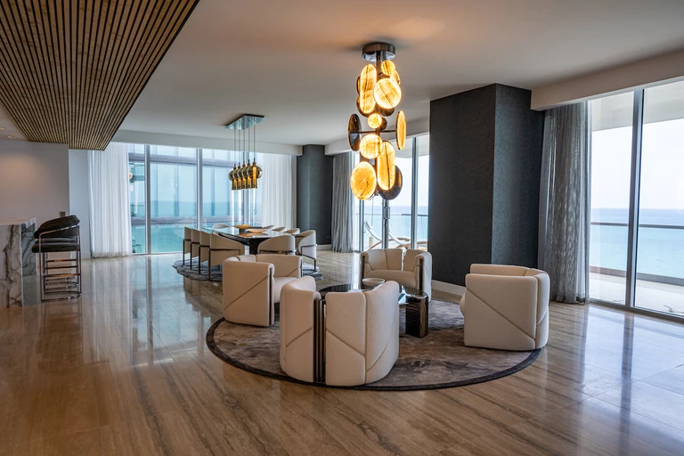 Turnberry Ocean Club to nowoczesna, szklana wieża o 54 piętrach, z tarasami zapewniającymi zapierające dech w piersiach widoki na ocean i zachody słońca, spa i basenem na dachu. To również jeden z najwyższych budynków w tej części atlantyckiego wybrzeża, który zaprojektowali amerykańscy architekci, Carlosa Zapata i Robert Swedroe. Projekt znajdującego się w apartamentowcu mieszkania pokazuje zdolność Visionnaire do tworzenia wyjątkowych wnętrz, pełnych elegancji i luksusu. Każdy mebel czy dekoracja jest unikalny i niepowtarzalny dzięki pracy współpracujących z marką rzemieślników.