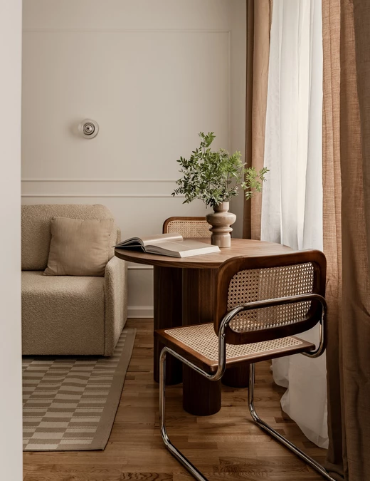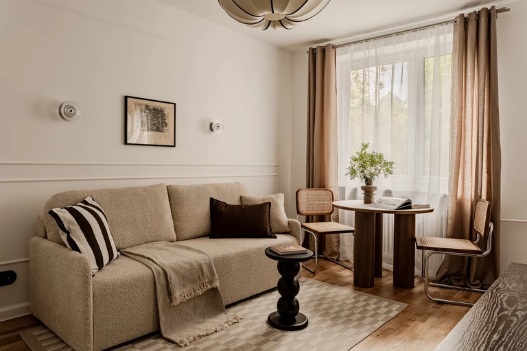 Jak podkreślają projektanci, nie lubią podążać za chwilową modą. Starają się zwykle stosować naturalne materiały i stonowaną kolorystykę. Szczególnie w przypadku gdy mieszkanie jest przeznaczone na wynajem i nie znają docelowego klienta. Dlatego powstały projekt kawalerki jest neutralny i ponadczasowy.