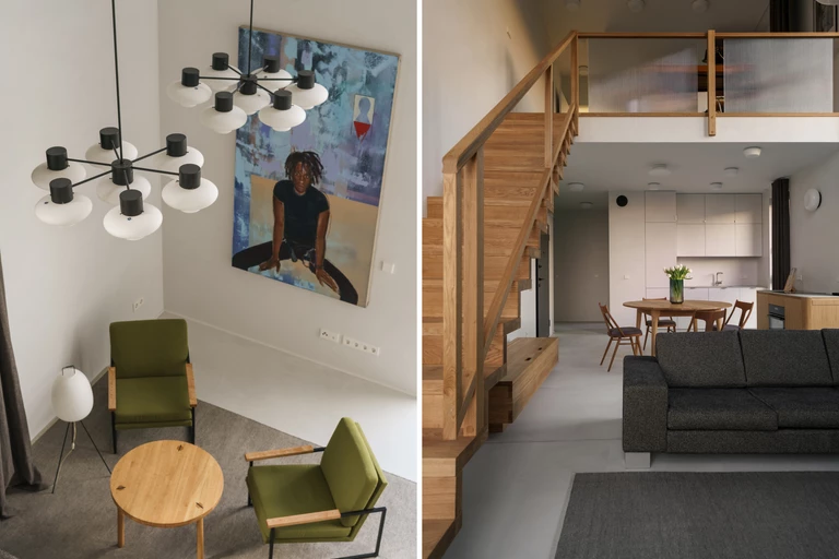 Mieszkanie wyposażono także unikatowymi meblami i lampami pochodzącymi z lat 50., 60. i 70. XX wieku, które poddano renowacji stolarskiej i tapicerskiej. Na szczególną uwagę zasługuje odrestaurowane biurko pochodzące z Pragi, które zostało wykonane na zamówienie w jednym egzemplarzu w latach 50. ubiegłego wieku. Drugim wyjątkowym obiektem, który znalazł się we wnętrzu, jest szary fotel autorstwa Ivana Matusika. Ten projekt powstał w latach 70. na potrzeby wyposażenia hotelu Kyjev w Bratysławie. Z kolei do dekoracji ścian wykorzystano fotografie Erwina Olafa, duetu Billy & Hells oraz obraz autorstwa Apolonii Sokół.