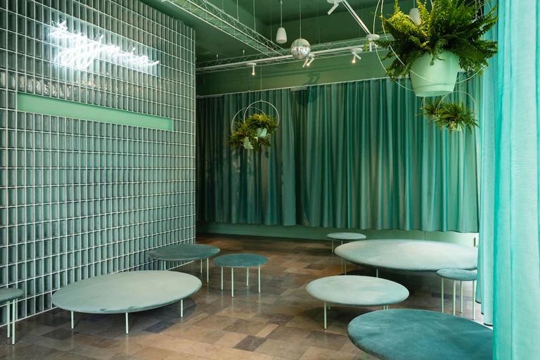 Zdjęcia: ŻYJNIA ul. Świdnicka 2/4, Wrocław, projekt: BUCK.STUDIO www.buck.pl, zakres: + projekt wnętrz + projekt wykonawczy + projekty mebli: seria siedzisk ‘Lentil’ wiodące materiały: luksfery / transparentne zasłony / rośliny, kuratorka:Katarzyna Roj, zdjęcia: Alicja Kielan