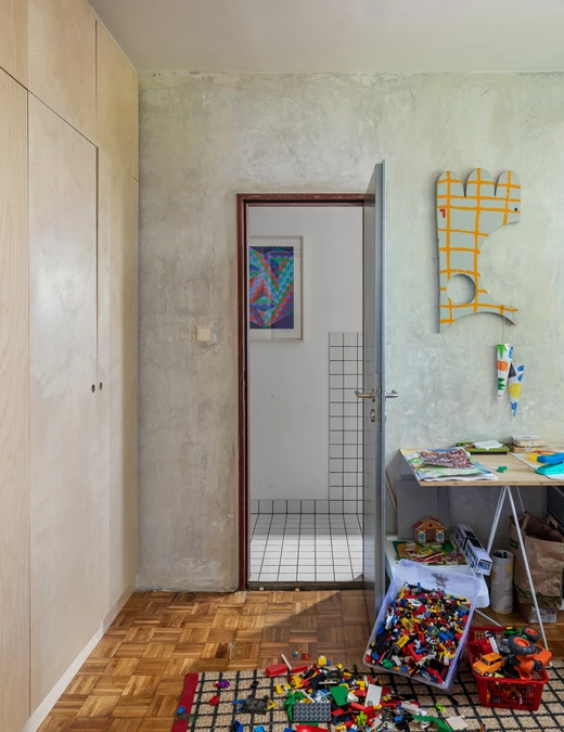 W układzie funkcjonalnym nie wprowadzono istotnych zmian. Jedynie przestrzeń dzienna została połączona z sypialnią, co pozwoliło na powstanie niezależnego pokoju dla dziecka.