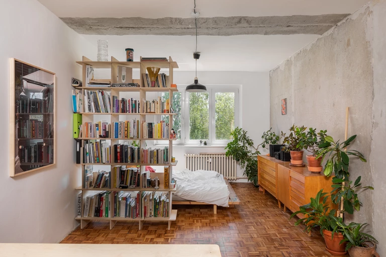 Kiedy małżeństwo dwójki malarzy zdecydowało się na aranżację i dostosowanie do swoich potrzeb tego niewielkiego mieszkania, poprosiło o pomoc studio architektoniczne NEUHÄUSL HUNAL. Czynnikiem decydującym w tym projekcie był bardzo ograniczony budżet, jednak jak mówią architekci „ zrekompensowany wzajemnym zrozumieniem między nami a klientami”.
