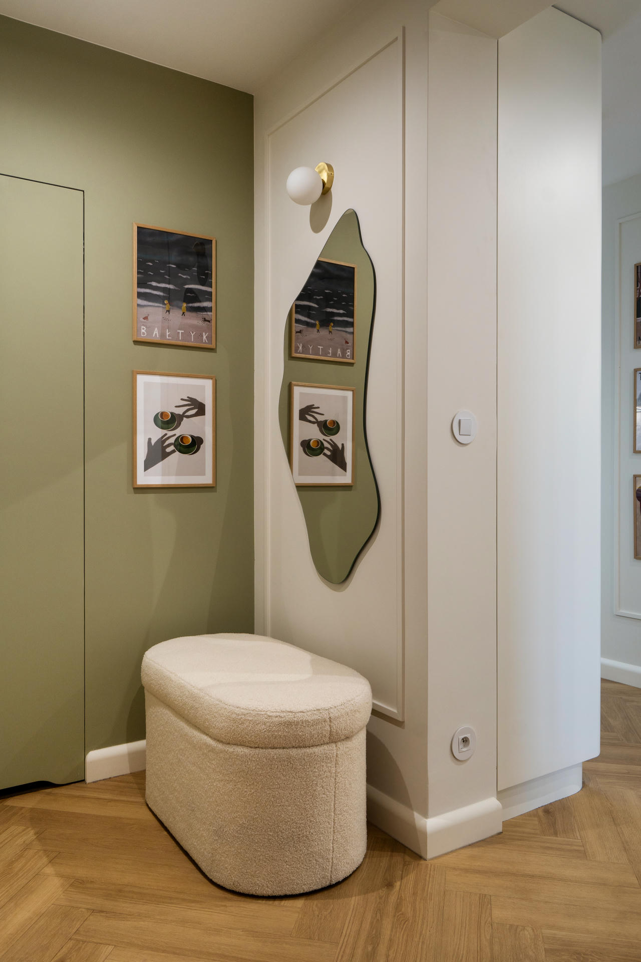 Inwestorzy cenią sobie estetykę i ponadczasowość wnętrz, więc istotne było, by mieszkanie przyciągało uwagę, ale nie ulegało chwilowym trendom – wyjaśnia Iza Gończowska. Jasna baza optycznie powiększa przestrzeń i podkreśla dobre doświetlenie narożnego mieszkania na szóstym piętrze.