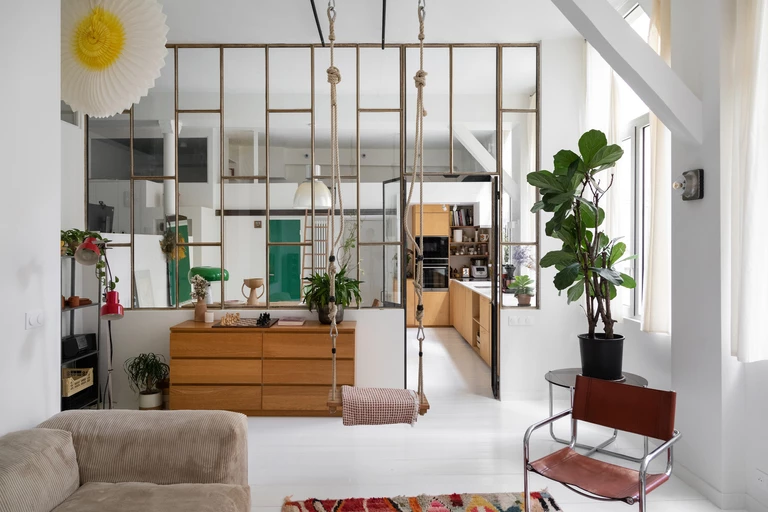 Isabelle Heilmann wpadła na pomysł, by wnętrze potraktować jak kostkę Rubika. Architektka w nowej aranżacji postanowiła wykorzystać różnice poziomów we wnętrzu, co pozwoliło na zwiększenie powierzchni użytkowej i zmianę wad wnętrza w jego atuty. Wykorzystała też transparentne przegrody, które doświetlają pomieszczenia i czynią je bardziej przestronnymi.
