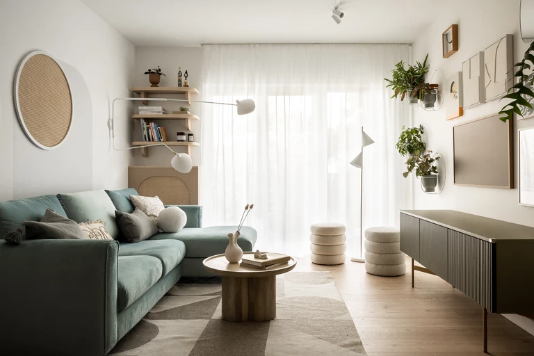 Autorką projektu wnętrza jest Magda Szczepaniak, założycielka pracowni gusta. Architektka dzięki prostym zabiegom stworzyła przytulną i subtelną przestrzeń pełną ciepła, z nawiązaniami do stylu boho i roślinnymi akcentami.