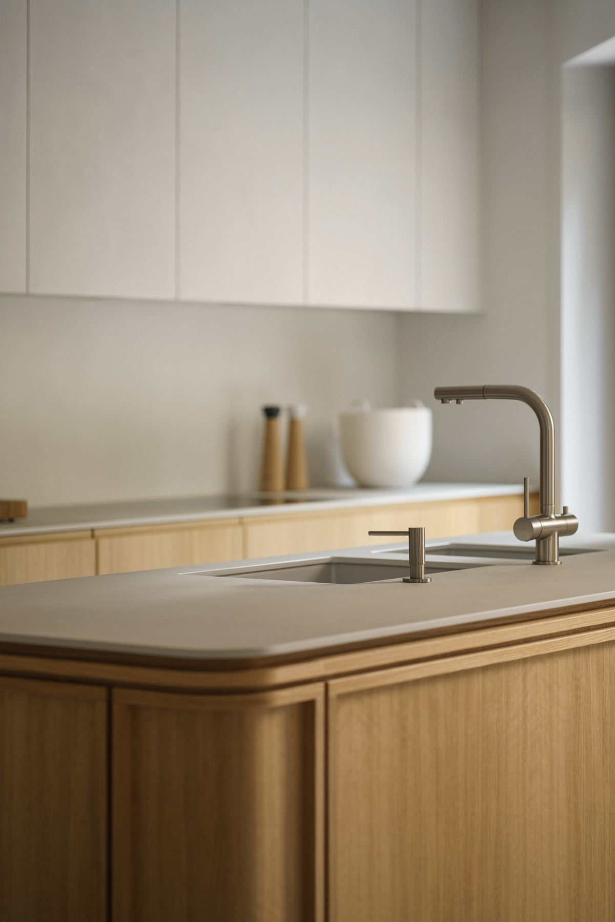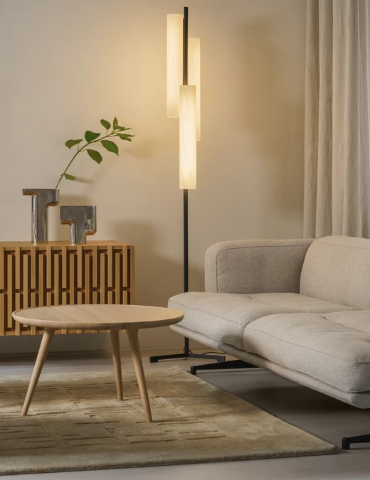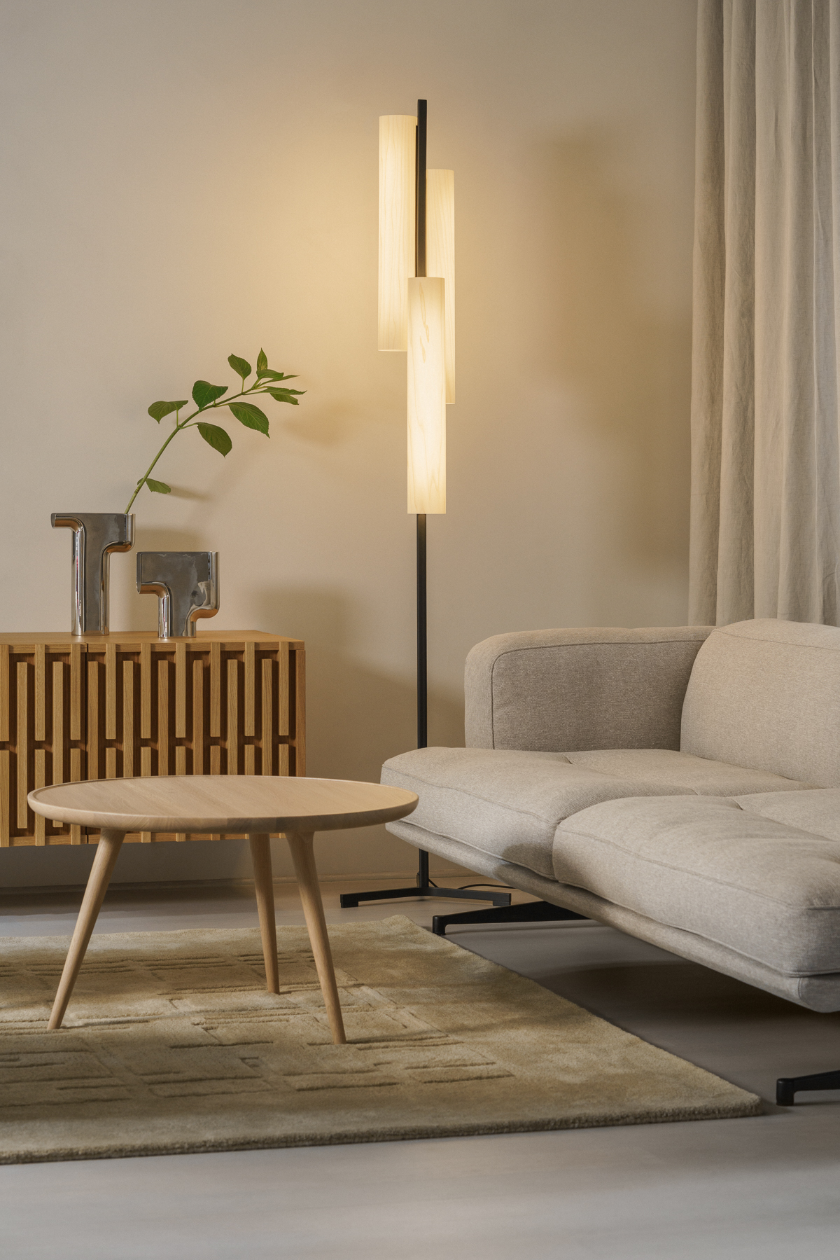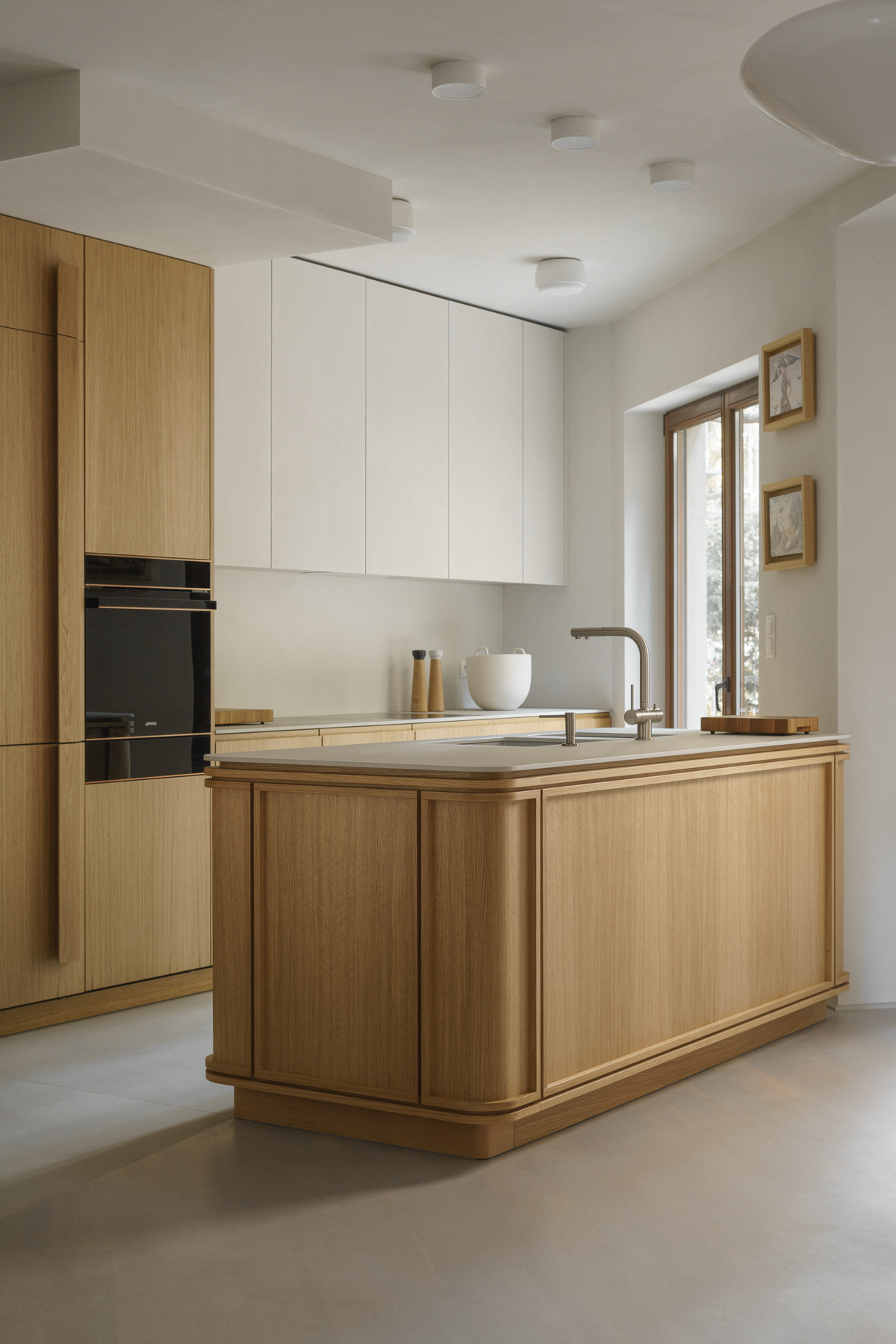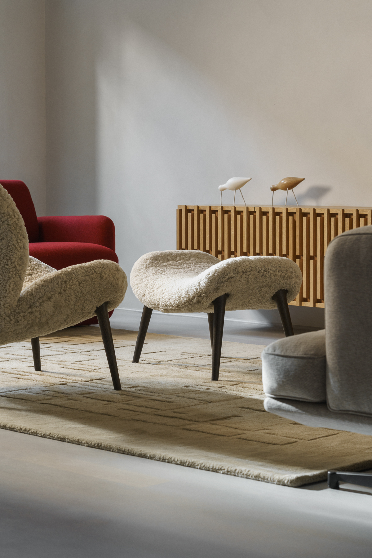 W projekcie pojawił się także dywan od studia Loft Kolasiński zaprojektowany dla duńskiej marki Massimo Copenhagen (kolekcja Symmetry), który subtelnie porządkuje przestrzeń i podkreśla jej spokojny, minimalistyczny rytm.