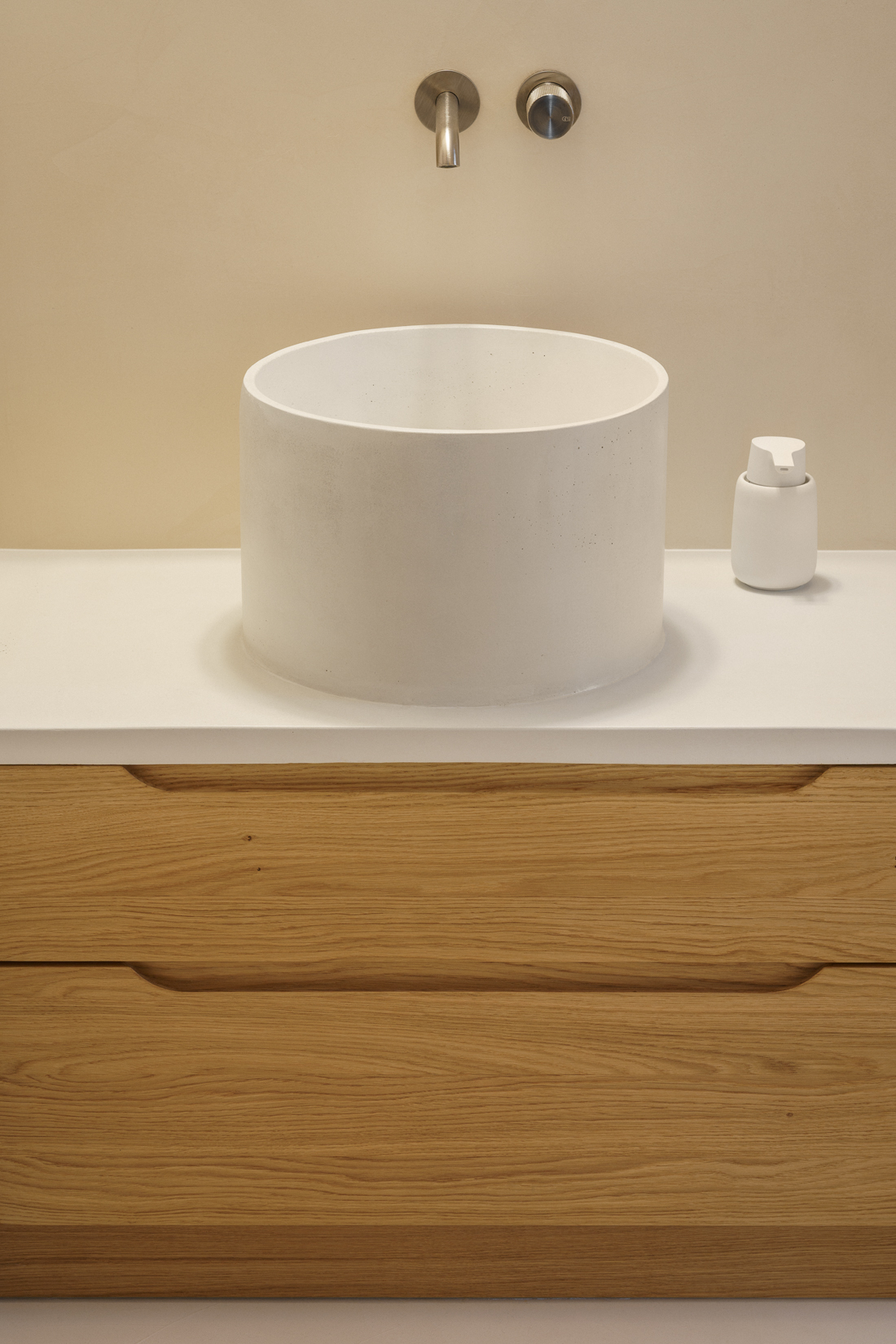 Ważnym elementem współpracy nad tym warszawskim wnętrzem byli rzemieślnicy, którzy pomogli nadać projektowi materialny wymiar. Meble wykonali WoodMaker oraz Marcin Wyszecki (Wood Effect), stalową stolarkę według projektu Loft Kolasiński zrealizowało Metal Madness, natomiast wcześniej wspomnianą betonową umywalkę – Quello.