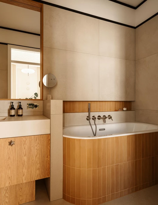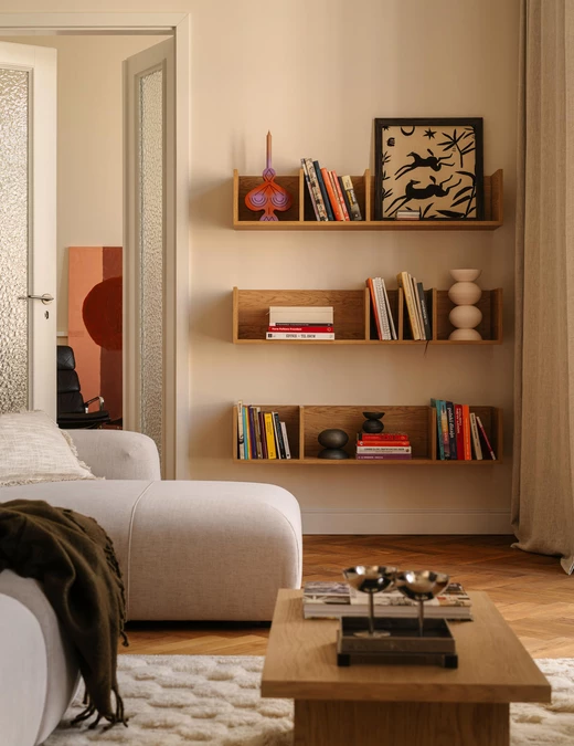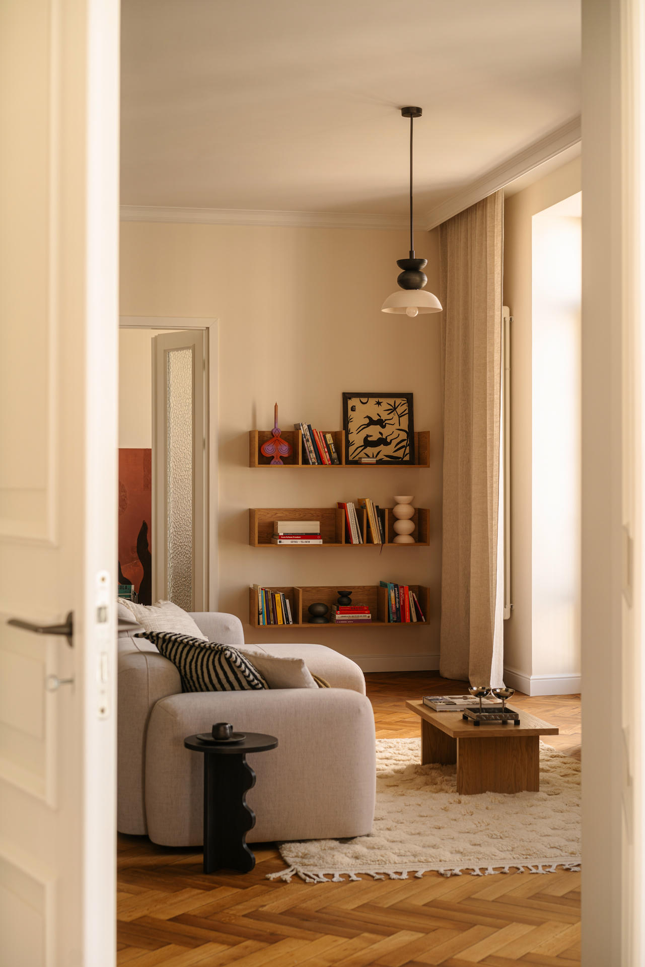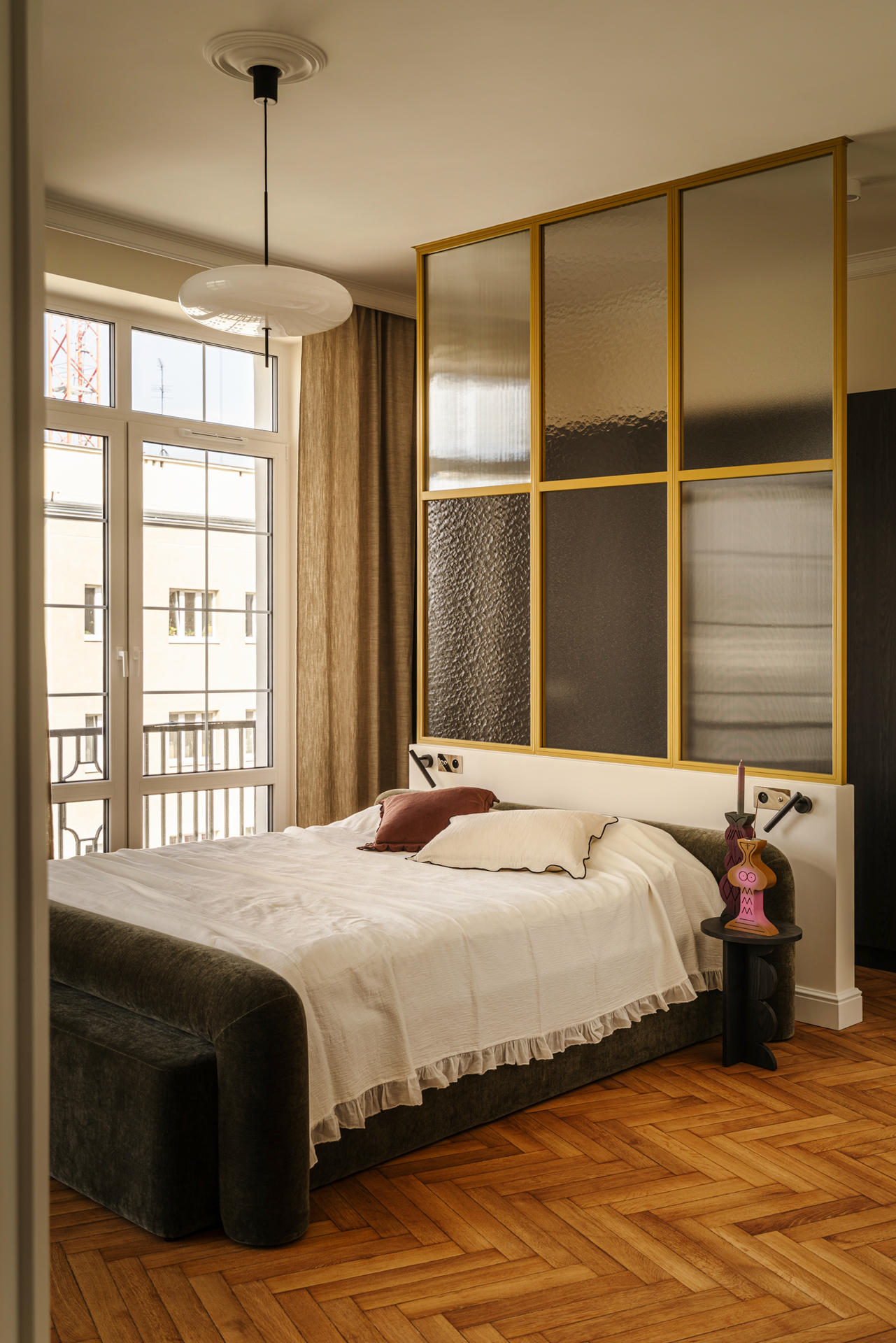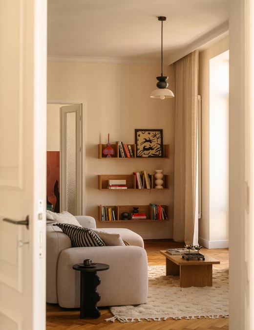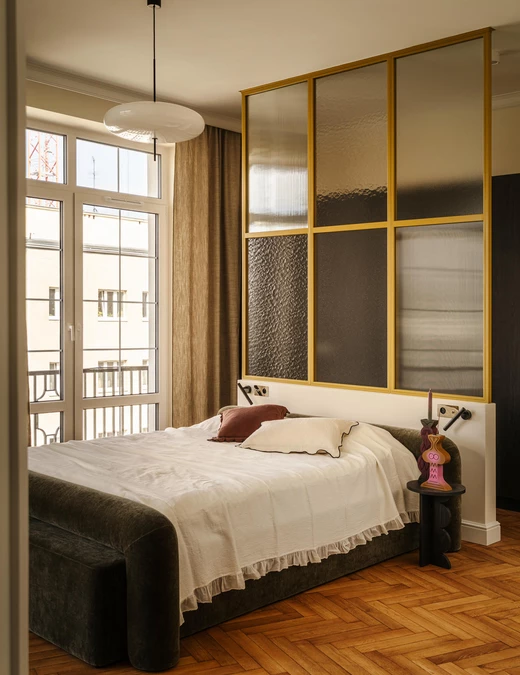 Jednym z najważniejszych założeń projektowych było podkreślenie modernistycznego dziedzictwa Gdyni oraz charakteru samej kamienicy. Witraże, miękkie obłości oraz minimalistyczne linie mebli i detali sprawiają, że mieszkanie stało się subtelną, współczesną interpretacją architektury lat 30. – ale nie jej dosłowną kopią.