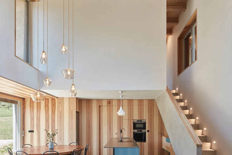 Twórcy tego domu podkreślają, że bardzo ważna przy tym projekcie była ekologia. Do przebudowy wykorzystano niemal wszystkie materiały, jakie zastano na miejscu w zniszczonym domu, wśród nich cegły i drewniane belki. Proces rekonstrukcji architekci nazwali „leczeniem starego domu”. Goście domu spotykają się w przestronnym salonie o podwójnej wysokości z piecem kaflowym i otwartą kuchnią. Schody w przestronnym holu prowadzą gości do poszczególnych pokoi z łazienkami, z których roztacza się niesamowity widok.