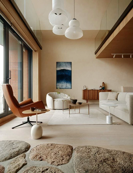 Dużą rolę odgrywa tu światowe wzornictwo. Meble i dodatki zostały wybrane w Australii, Japonii, USA i Polsce, co pozwoliło stworzyć przestrzeń, w której lokalność splata się z globalnym designem. Szczególnym akcentem są wielkoformatowe kafle, które wprowadzają do wnętrza element artystyczny.