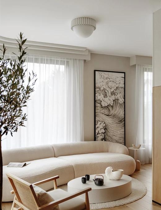 80-metrowy apartament został zaprojektowany dla pary prywatnych inwestorów, bliskich przyjaciół architekta. Ich oczekiwania nie dotyczyły modnych rozwiązań ani efektownych detali – chodziło o stworzenie miejsca, w którym można się zatrzymać, odpocząć i poczuć równowagę. Styl Japandi łączący japońską prostotę z nordyckim hygge okazał się trafnym wyborem.
