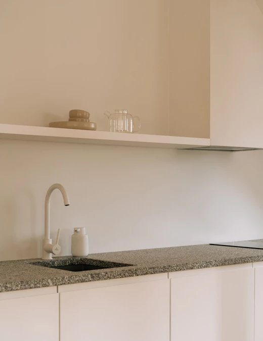 We wnętrzu nowoczesność i minimalizm łączą się z ponadczasowymi akcentami. Każda część mieszkania jest inna, lecz nie konkuruje ze sobą. Wyszukane i jednocześnie proste elementy przyciągają uwagę. Przyglądając się wykończeniu bliżej, można dostrzec wysoką jakość materiałów.