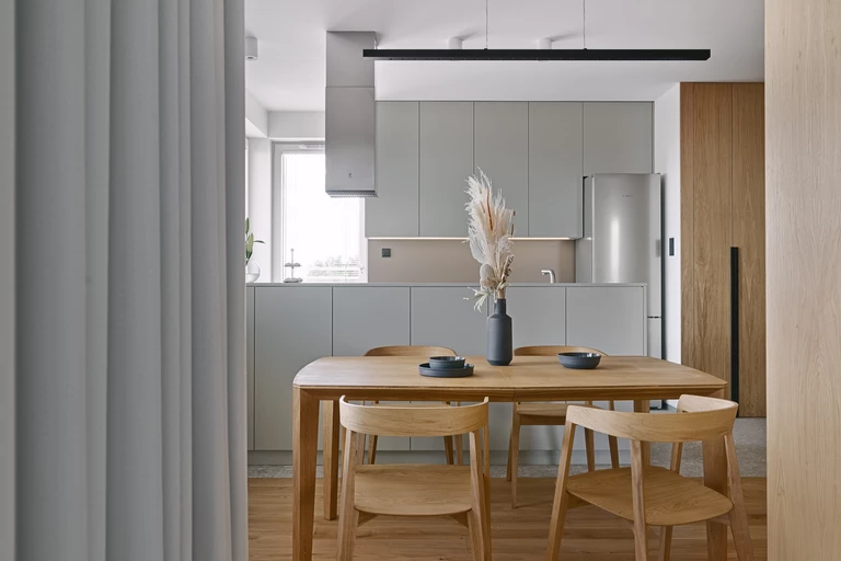 Zaprojektowane przez Magdę i Dominikę z pracowni The Line Studio mieszkanie o powierzchni 65 m² znajduje się w cichej dzielnicy Krakowa, tuż przy Lasku Wolskim. Projekt idealnie odzwierciedla potrzeby właścicielki – młodej lekarki, która po intensywnych dniach pracy szuka odpoczynku i kontaktu z...