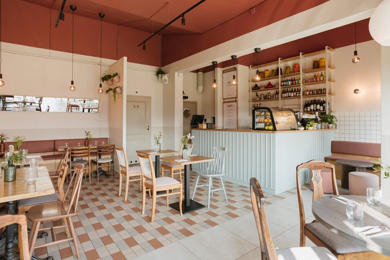 W projekcie zadbano o to, aby każdy gość znalazł dla siebie odpowiednie miejsce. Ostatecznie stoliki można wygodnie rozdzielić lub połączyć dla większej grupy. Przy oknach znalazły się czteroosobowe okrągłe stoły. Zaprojektowano też tapicerowane ławy i niewielki aneks z niższymi stolikami kawiarnianymi i pufami.