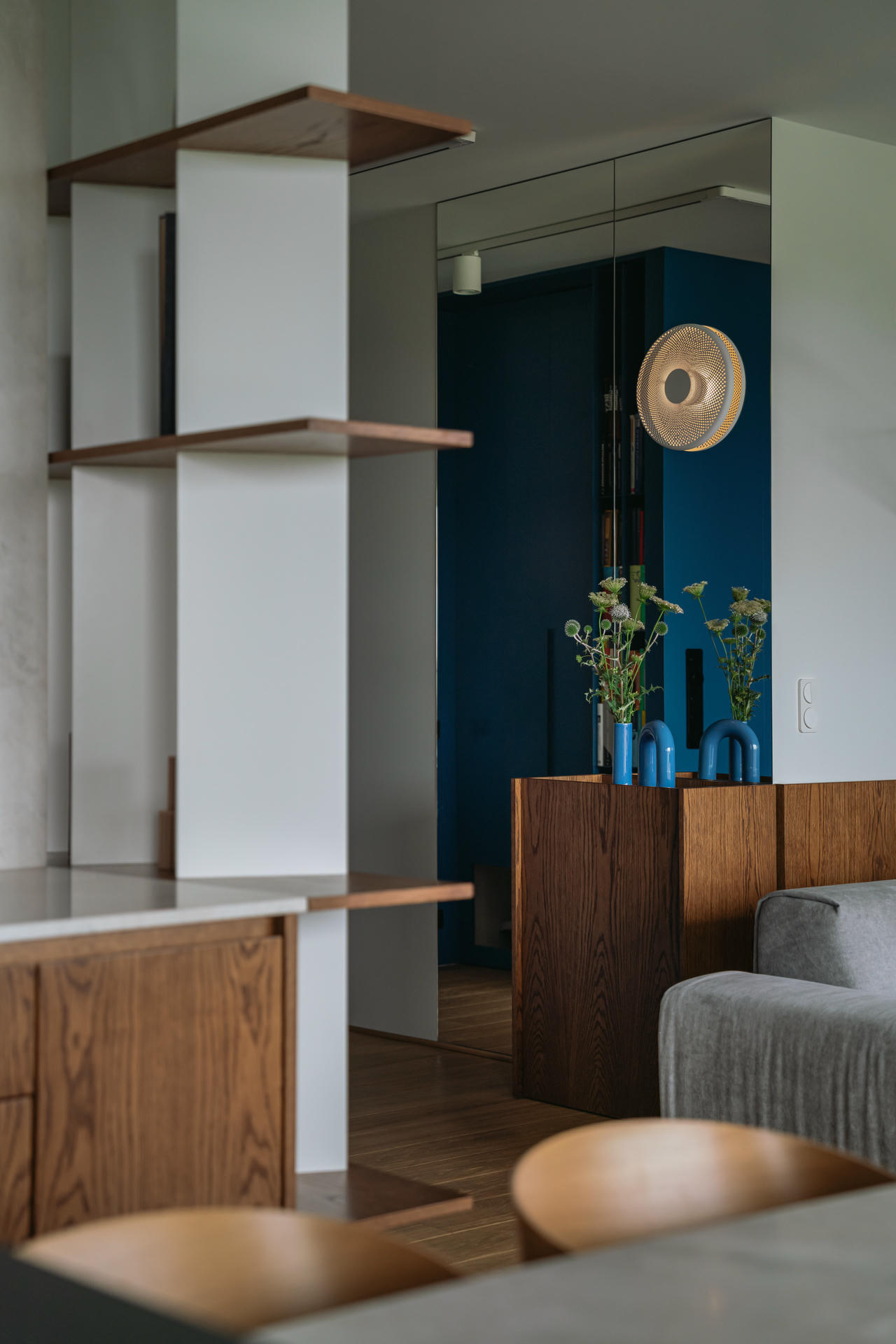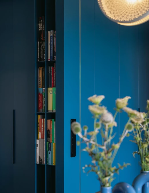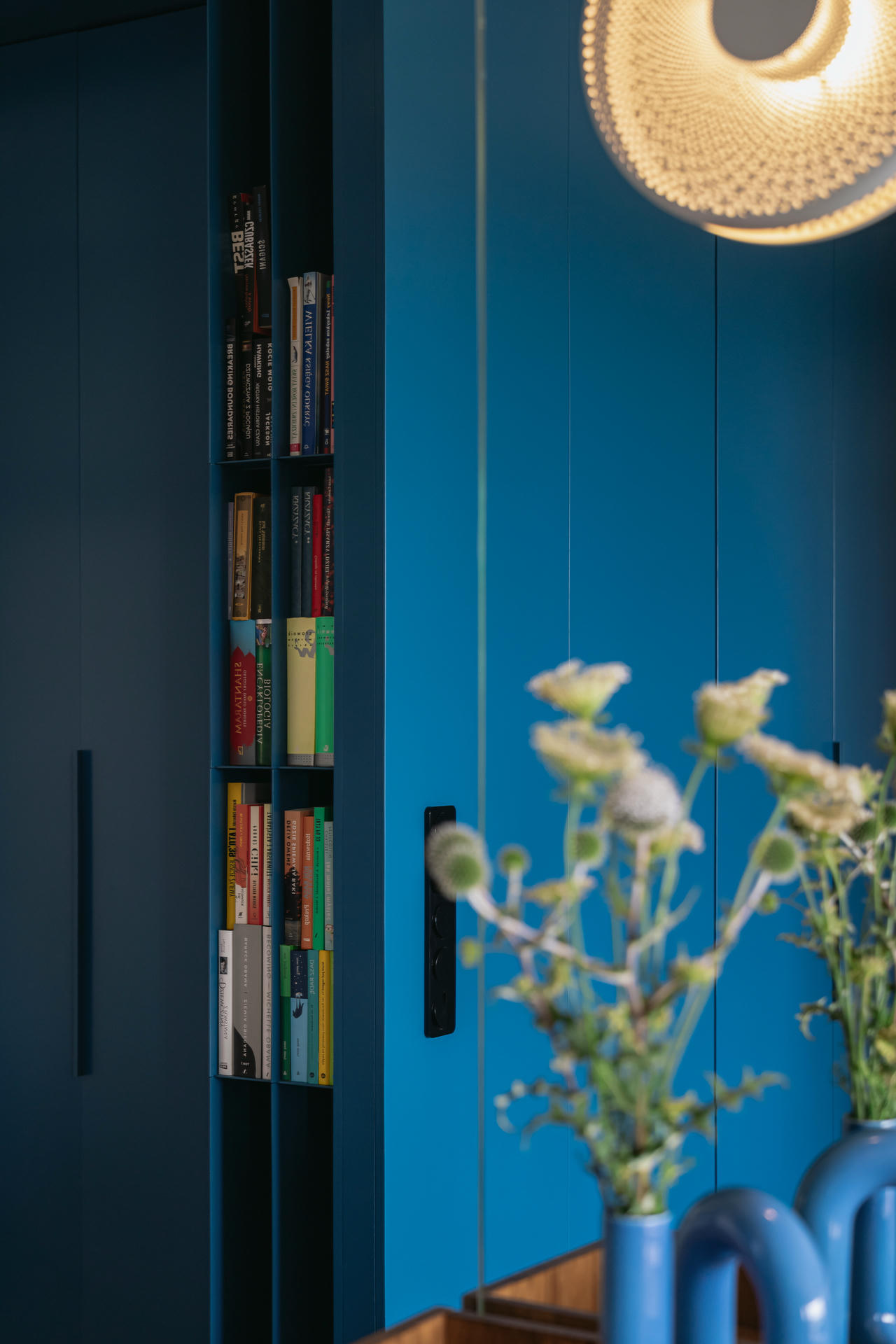 Niebieskie akcenty i sekretny pokój w mieszkaniu na Jeżycach