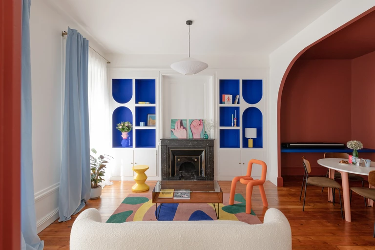 Sporo się tu dzieje. Jest błękit Yvesa Kleina, neonowy róż, koralowa czerwień, szczypta szmaragdowej zieleni i słonecznej żółci. Do tego łuki, biało-czarna szachownica i dekoracje drukowane w 3D. Architektki z francuskiego studia Craie Craie połączyły w tym mieszkaniu swoje ulubione kolory i charakterystyczne dla swoich prac graficzne rozwiązania.