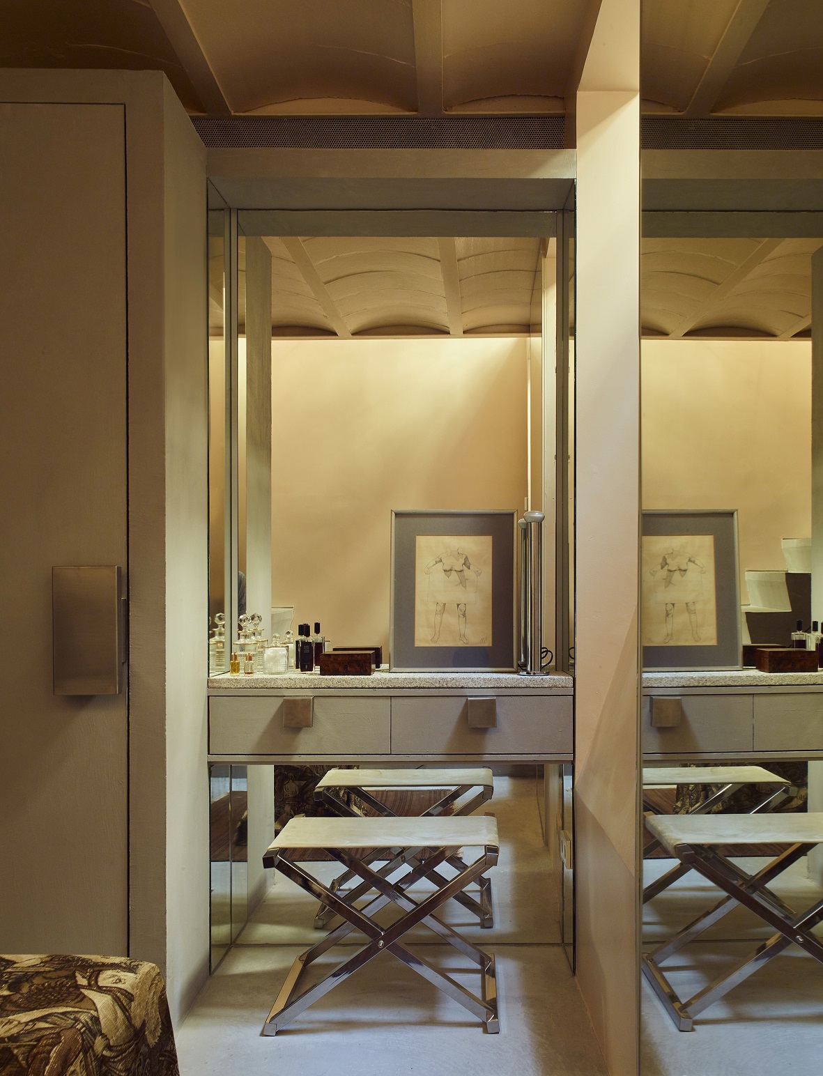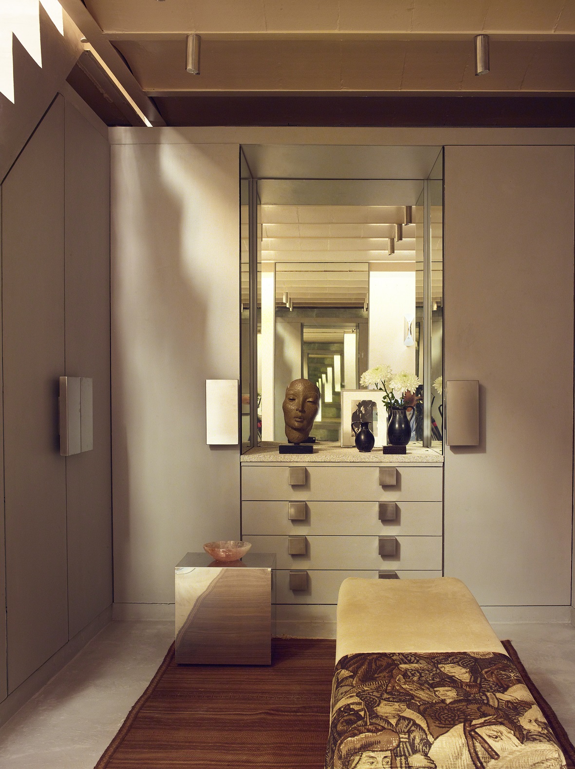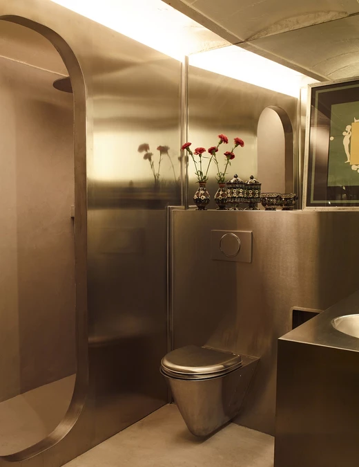Za punkt odniesienia projektanci przyjęli dwa różne światy estetyczne. Z jednej strony życie nocne lat 70., obecne w charakterze zabudów i różnych elementó zaprojektowanych specjalnie do tego mieszkania i wykonanych na zamówienie. Z drugiej – industrialny ton przywołujący Nowy Jork lat 80., widoczny w doborze metali i w technicznym, użytkowym podejściu do detalu.