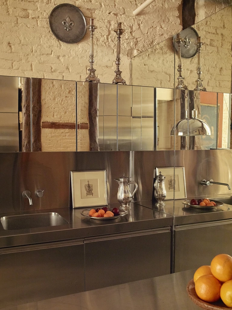 Najbardziej znaczącą decyzją projektową, jak przyznają projektanci, było zastosowanie stali nierdzewnej w kuchni i łazience. Dziś stalowe zabudowy są częstsze, jednak w momencie realizacji takie rozwiązanie miało znacznie bardziej świeży, mniej oczywisty charakter. Wnętrze nie jest duże, dlatego kluczowe stało się pilnowanie proporcji i selekcja elementów. Ograniczenia przestrzeni wymuszały konsekwentne decyzje.