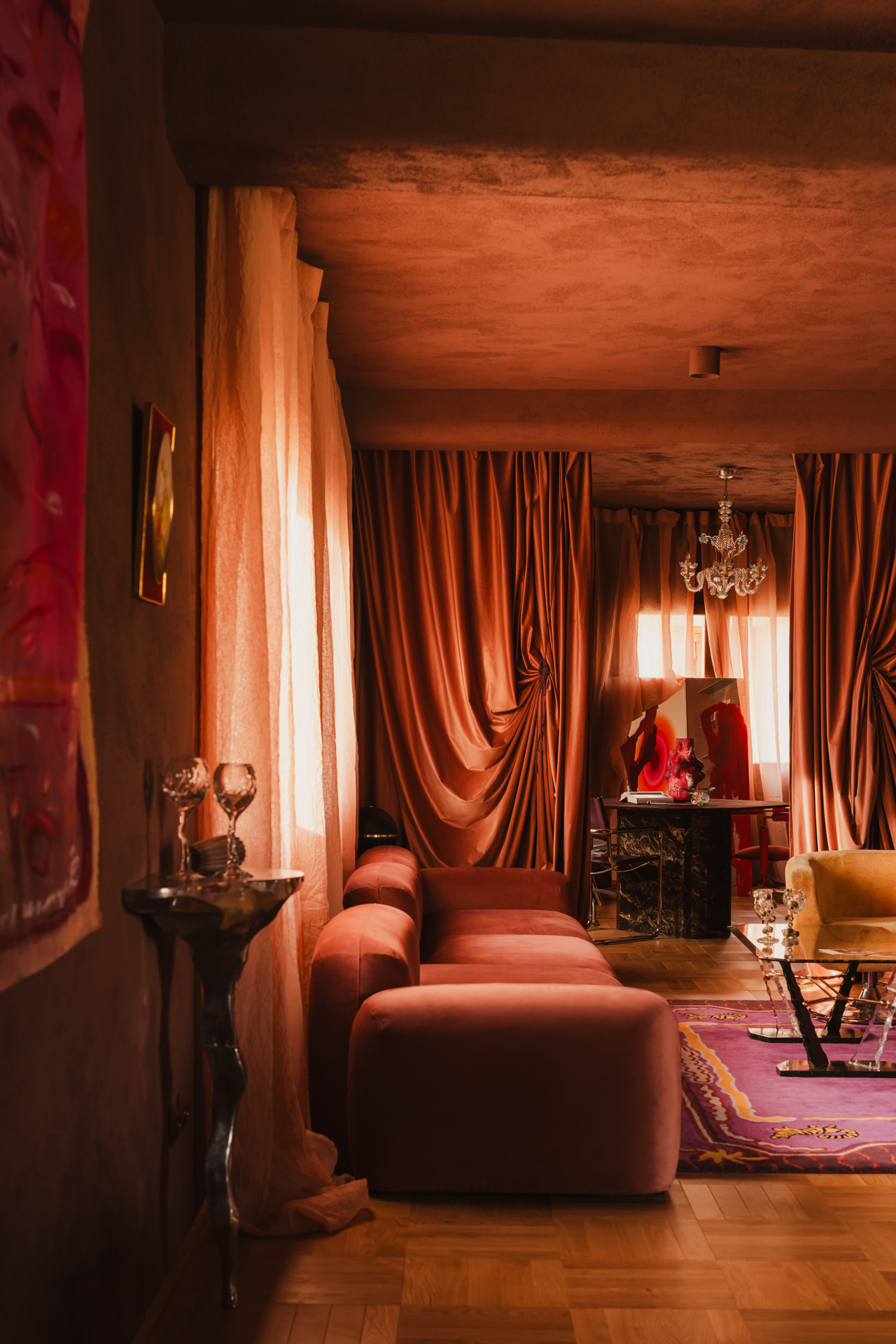 Pomiędzy górami pasma Sierra de Mariola, w prowincji Walencja, czas płynie inaczej. To tutaj, z widokiem na XIII-wieczny zamek i renesansową katedrę, powstało wnętrze, które jest osobistą opowieścią architekta. Przestrzeń, gdzie surowość Rojo Alicante spotyka się z miękkością welurowych ścian, a polska sztuka prowadzi dialog z hiszpańskim słońcem.