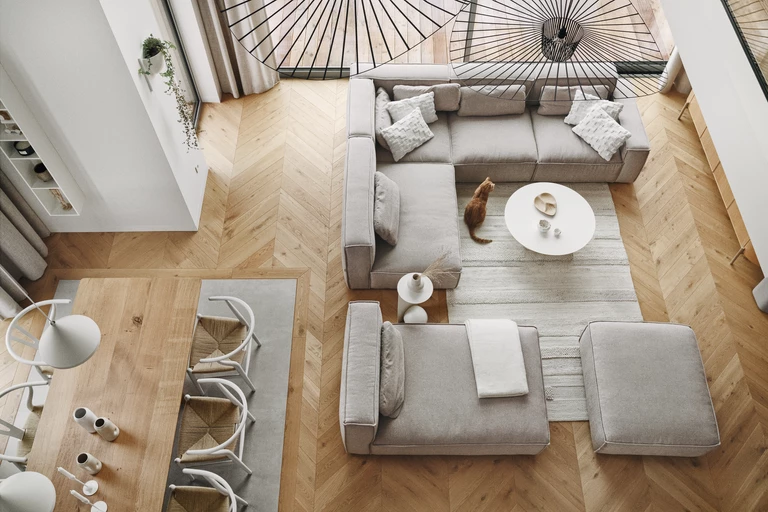 „Założeniem projektu była nowoczesna i ponadczasowa przestrzeń. Wnętrze miało pięknie się starzeć. Surowce wykorzystane w projekcie to wysokiej jakości naturalne materiały, które są trwałe, nieprzemijające i autentyczne. Kolorystyka jest neutralna i stanowi bazę, która ustępuje miejsca widokom za oknem” – opowiada Sylwia Choszcz.