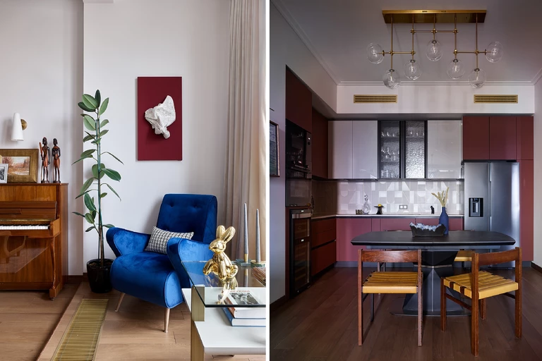 Ten zlokalizowany w Moskwie apartament o powierzchni 140 m2 ujmuje eleganckim wnętrzem, w którym nie zabrakło zabawy formą, fakturami i kolorami.