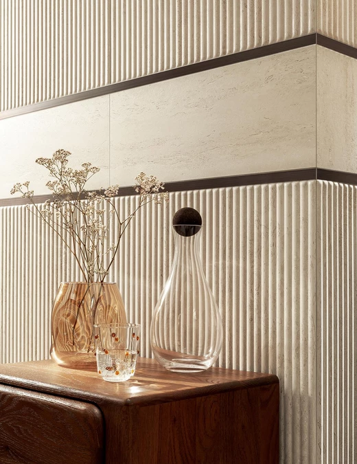 Kolekcja Echo obejmuje grafiki inspirowane różnymi odmianami trawertynu, oddając ich naturalne zróżnicowanie kolorystyczne i strukturalne. Te niuanse nadają kolekcji unikalny, organiczny charakter, dzięki czemu granica między naturą a nowoczesnym wzornictwem pozostaje subtelna.