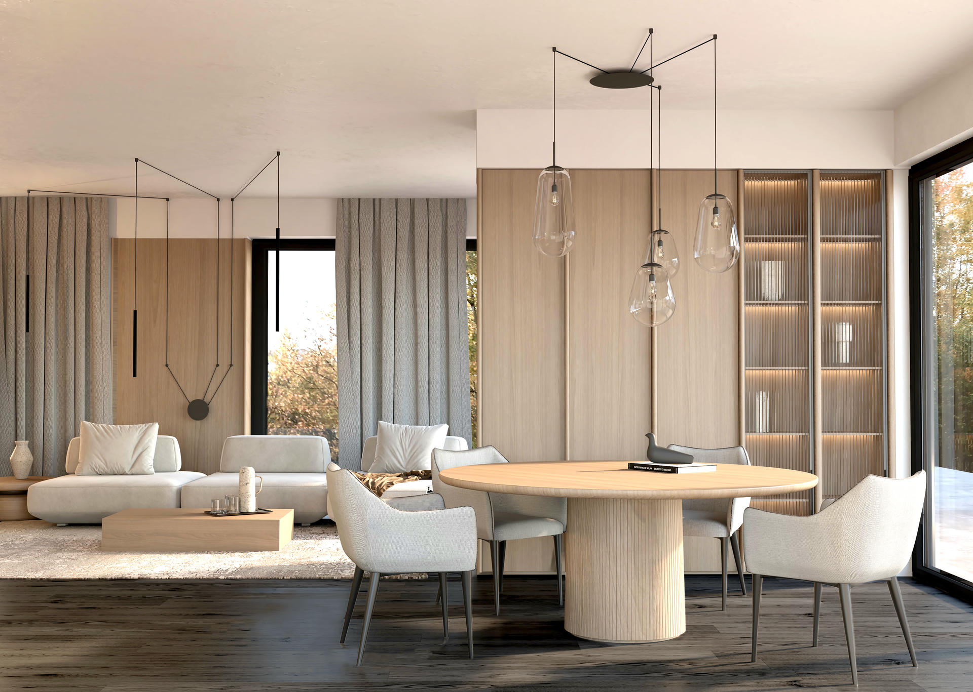 Oświetlenie powinno definiować styl, tworząc spójną kompozycję z otwartym planem pomieszczeń. Ma to znaczenie zwłaszcza w dużych strefach dziennych, w których łatwo zaburzyć harmonię aranżacji.
