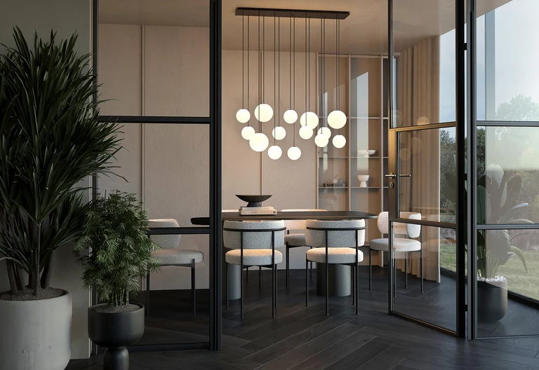 Dla osób, którym zależy na swobodzie w aranżacji, dobrym wyborem będzie kolekcja Sphere – wiszące, szklane lampy, które dzięki adapterom z Systemu Cameleon można łączyć z systemem szynowym Profile i CTLS. System szynowy umożliwia swobodne przepinanie opraw, co pozwala na natychmiastową zmianę ich położenia bez modyfikacji instalacji. Daje to elastyczność użytkową przy zachowaniu pełnej spójności wizualnej.
