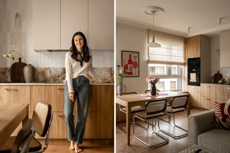 Dziś zaglądamy do mieszkania na Targówku, któremu Karina Roman z pracowni P/art nadała wiele ciepła. W jej aranżacji dominują odcienie drewna, beże, kaszmiry oraz subtelne struktury na tapetach, które przełamała mocniejszymi akcentami w postaci barwnych dodatków czy blatu kuchennego o wyrazistym rysunku.