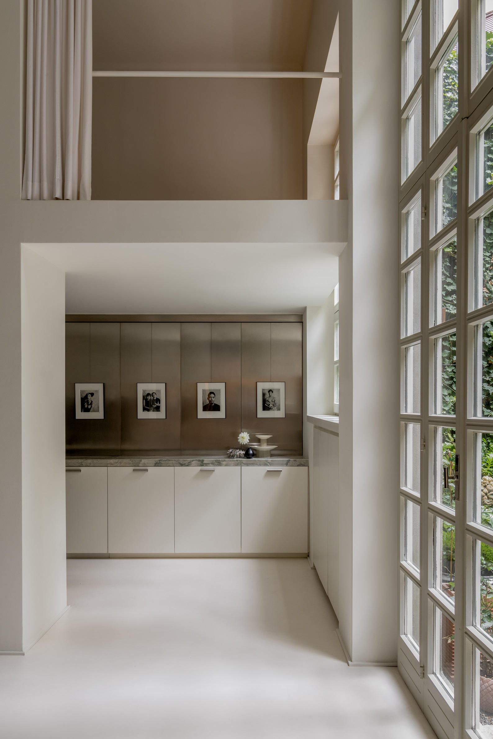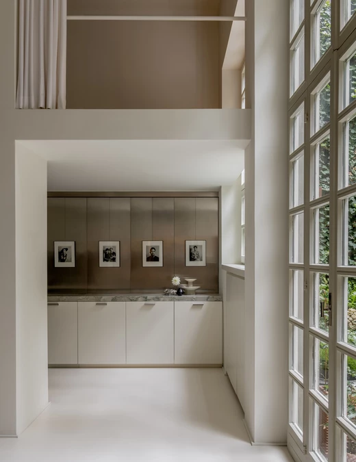Architekci podeszli do projektu kompleksowo. Budynek pierwotnie stanowiący przedłużenie kamienicy z początku XX wieku wymagał izolacji i gruntownego remontu. Wnętrze o powierzchni 150 metrów kwadratowych projektanci ukształtowali z kolei wokół wysokiej, centralnej części z antresolą i wielkoformatowymi przeszkleniami, które sprawiają, że ogród „wchodzi” do środka.