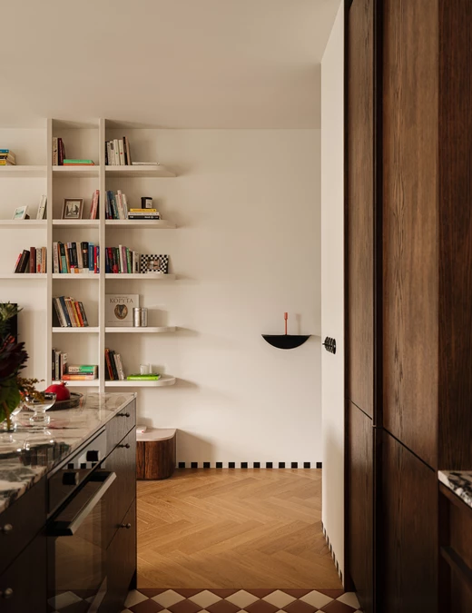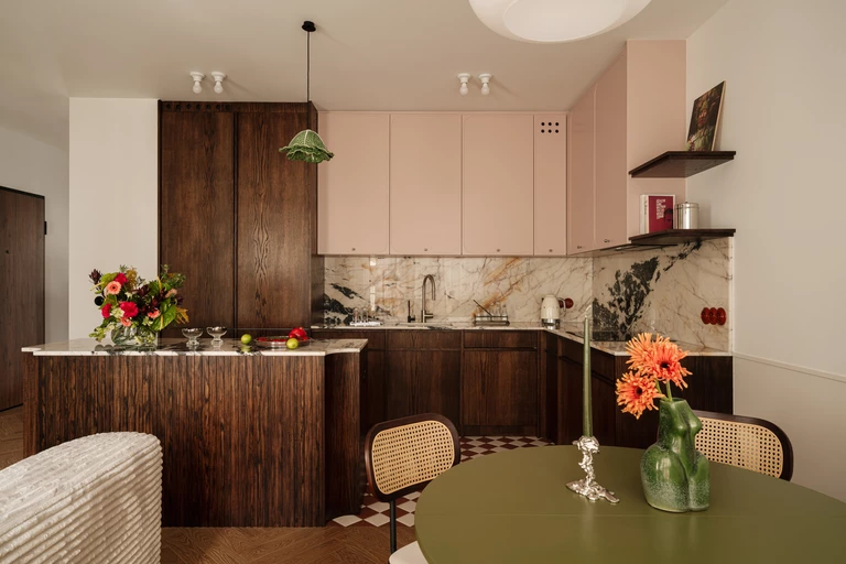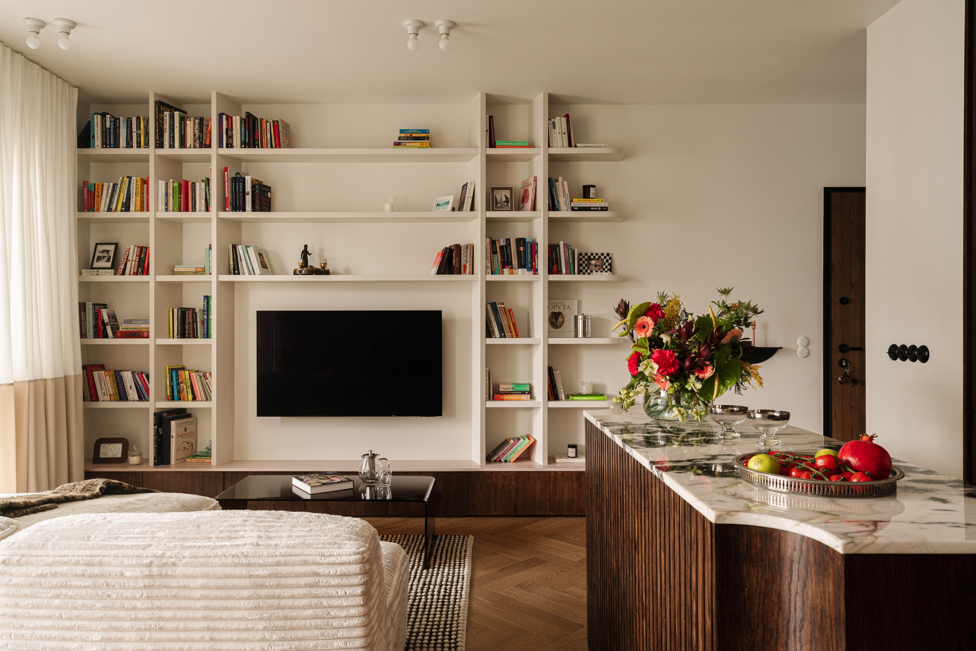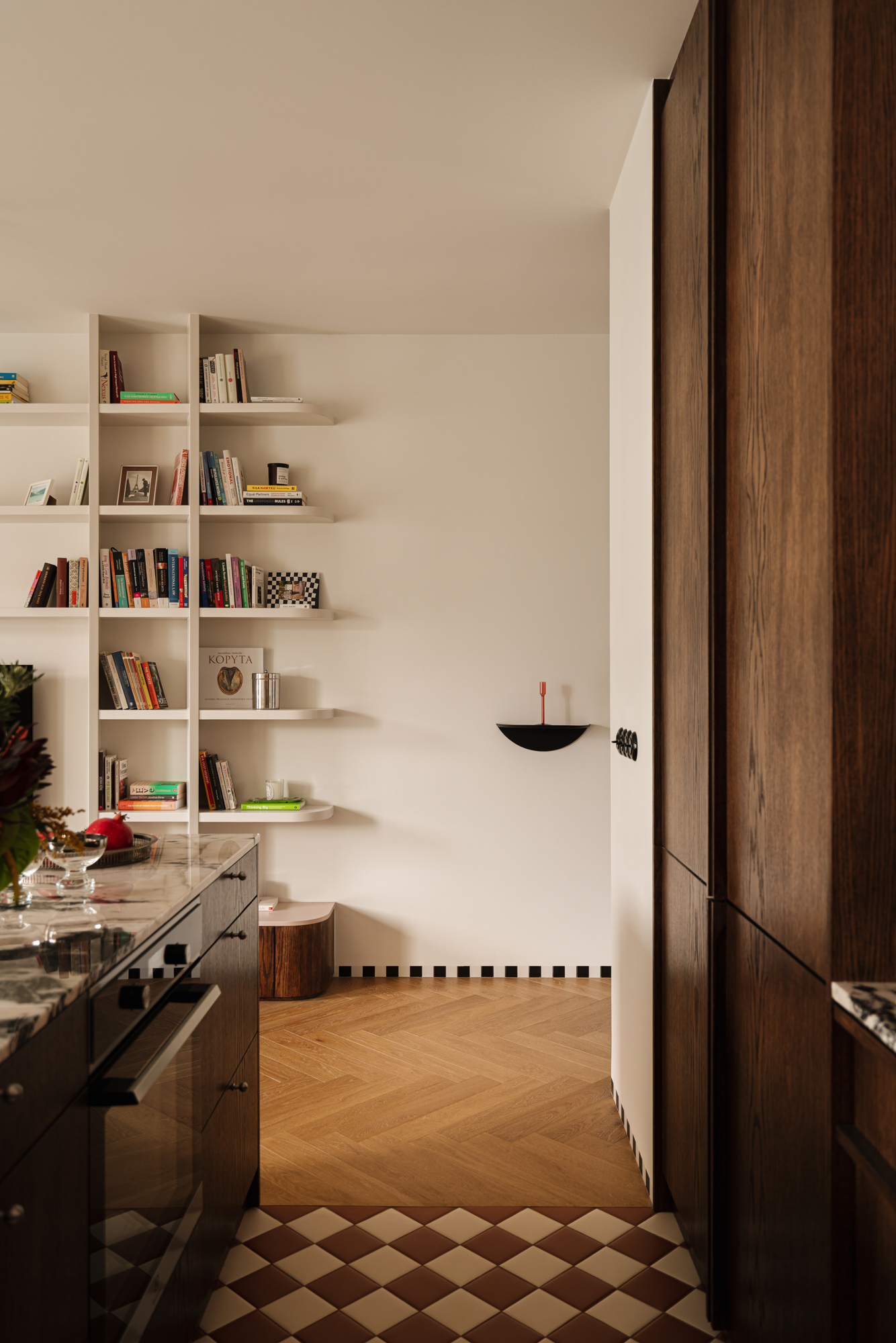 Realizacja jest konsekwentną projektową odpowiedzią na te wymagania. Kompozycja opiera się o czytelne podziały, precyzyjnie dobraną paletę barw oraz świadome operowanie fakturą i detalem. Projektantki subtelnie nawiązały do klasyki, ale bez uciekania się do dosłownych cytatów – zamiast tego zbudowały oryginalny, współczesny język architektoniczny.