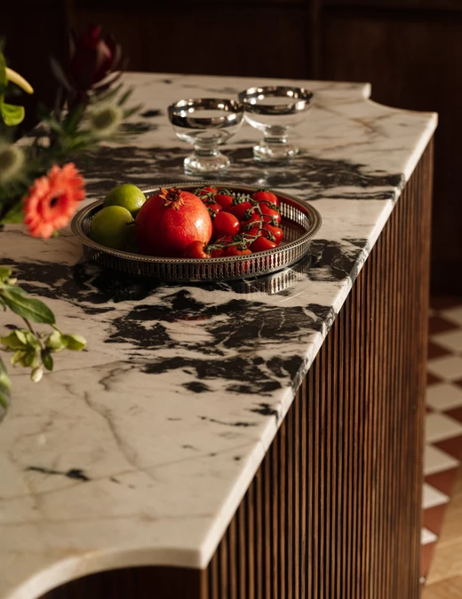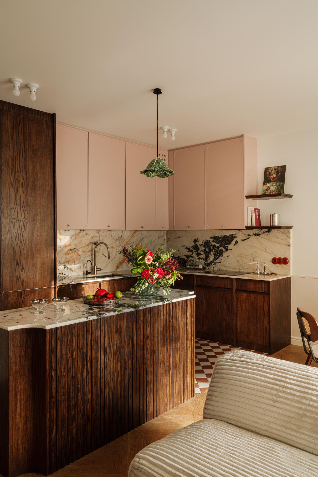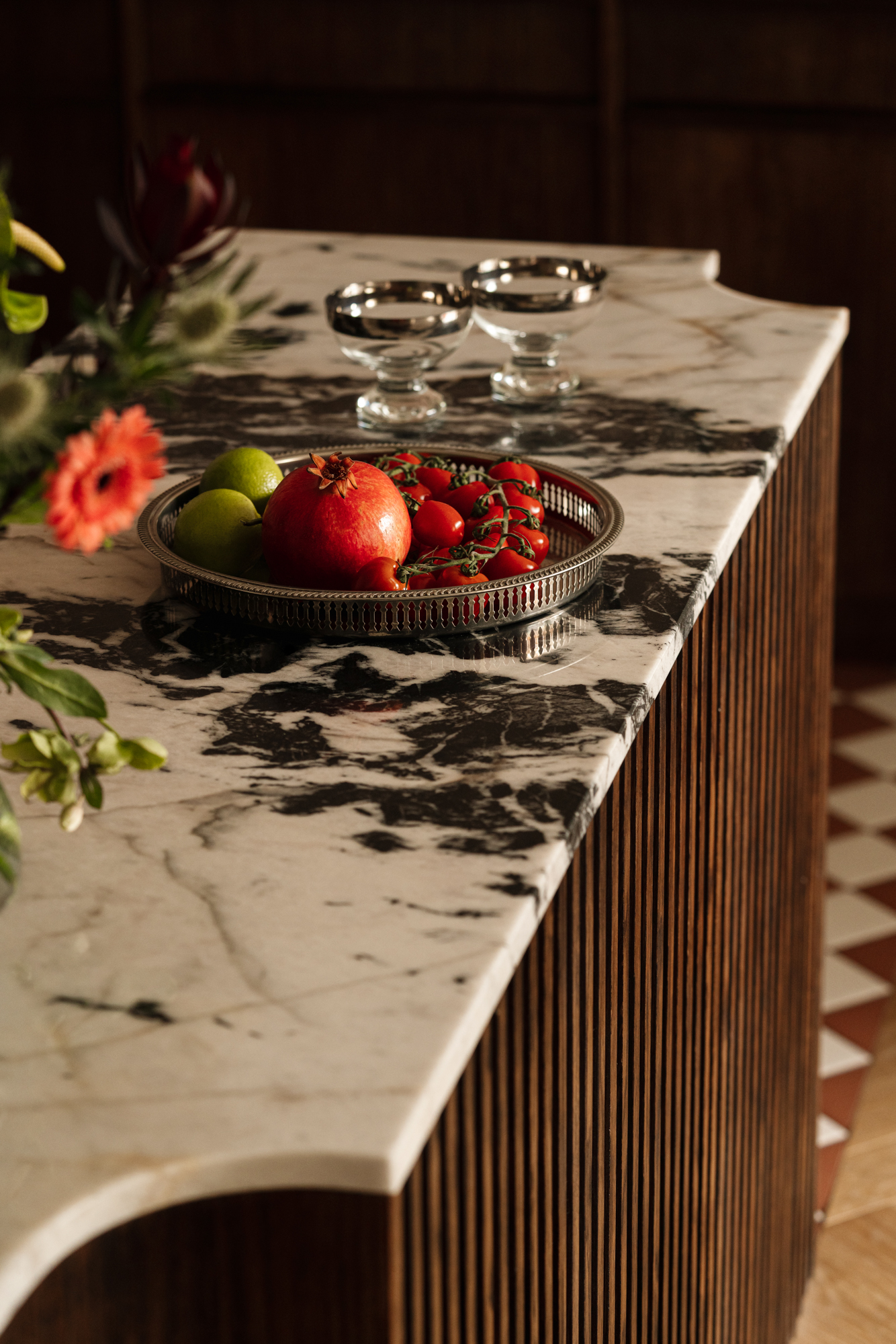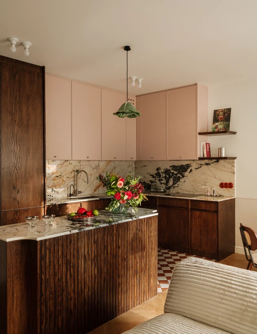 Realizacja jest konsekwentną projektową odpowiedzią na te wymagania. Kompozycja opiera się o czytelne podziały, precyzyjnie dobraną paletę barw oraz świadome operowanie fakturą i detalem. Projektantki subtelnie nawiązały do klasyki, ale bez uciekania się do dosłownych cytatów – zamiast tego zbudowały oryginalny, współczesny język architektoniczny.