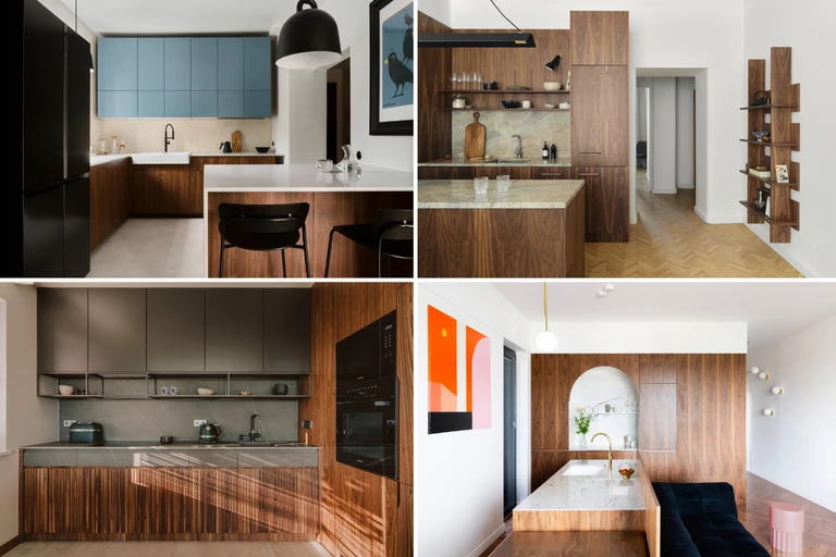 Orzechowa kuchnia. 10 aranżacji z ciepłym, drewnianym fornirem w roli głównej