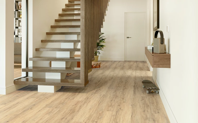 Herbata z cytryną rozlana w kuchni, mokre buty w przedpokoju, zwierzak, który rozchlapuje wodę z miski – te wyzwania dla paneli VIN IN nie stanowią problemu. Winyl jest w 100% wodoodporny, nie puchnie i nie odkształca się pod wpływem wilgoci – w przeciwieństwie do tradycyjnych paneli laminowanych. Sprawdza się nie tylko w salonach czy sypialniach, ale także w przedpokojach, kuchniach, a nawet łazienkach.