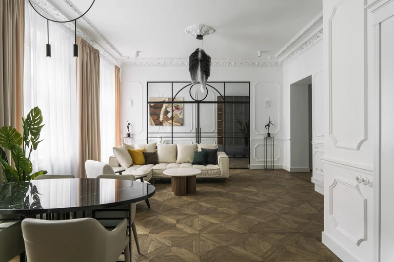 Celem była jednak aranżacja nie muzealna, ale nowocześnie eklektyczna. – Co do wyposażenia i wystroju, od początku chcieliśmy sięgnąć po współczesne meble, obrazy, rzeźby, dodatki. Iść w stronę stylistyki XXI wieku. Podobnie jak paryżanie postępują z XIX-wiecznymi kamienicami z okresu wielkiej przebudowy miasta – wyjaśnia architekt.