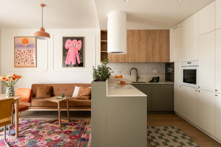 To skąpane w subtelnych barwach niewielkie mieszkanie w Rzeszowie należy do młodej pary – Magdy i Tomka. „Początkowo rozmawialiśmy o połączeniu stylu japandi z pastelami, ale z czasem te kolory zaprowadziły nas w innym kierunku” – mówi Weronika Sypuła z pracowni About The Form, która odpowiada za aranżację wnętrza.