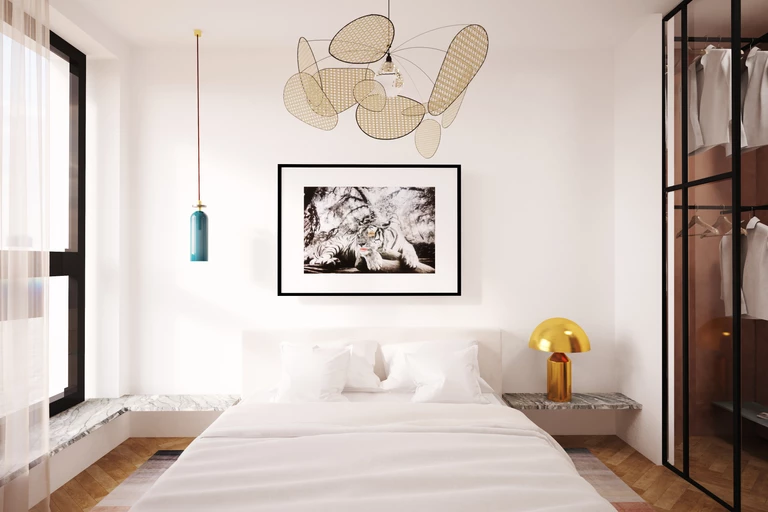 Pierwsze wrażenie to surowy dizajn, drugie to ciepło akcentów kolorystycznych występujących w każdym pomieszczeniu. Przeszklenia oraz obszerne lustra powiększają optycznie przestrzeń, dając możliwość różnej aranżacji wnętrza pełnego światła i oddechu.