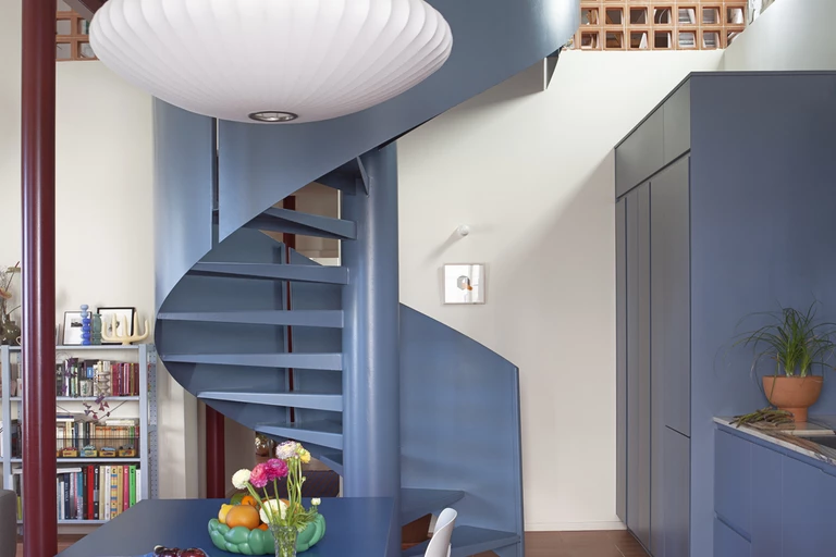 Do morza nawiązano poprzez szerokie zastosowanie błękitu, którym skąpano m.in. schody, kuchnię i okiennice. Spora ilość roślin w doniczkach oraz rude płytki świetnie oddają przy tym śródziemnomorską przyrodę. Te spokojne motywy aranżacyjne skontrastowano wyrazistymi barwami. Nasycone bordo można dostrzec na elementach konstrukcyjnych, czerwień na nogach stołu kuchennego, zaś zieleń i brąz w łazience. Obrazy i dodatki do domu zdobią również żółć oraz pomarańcz.