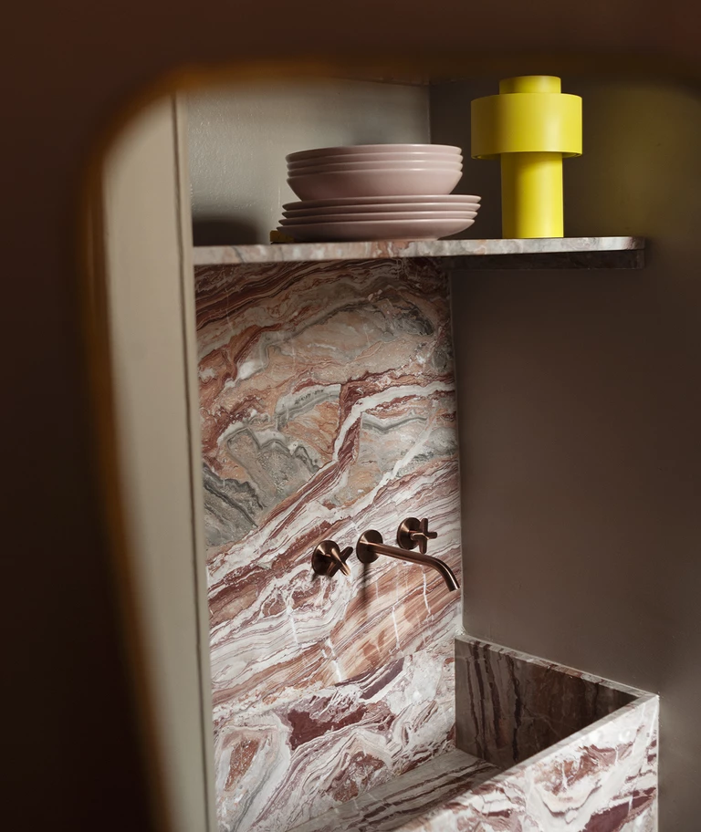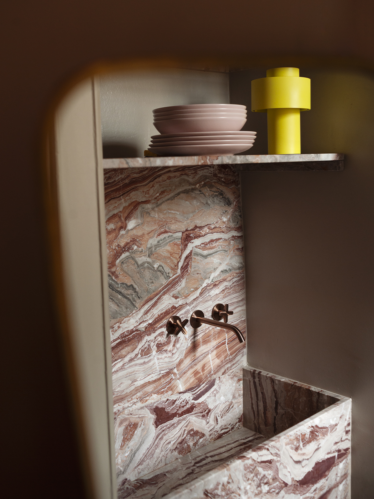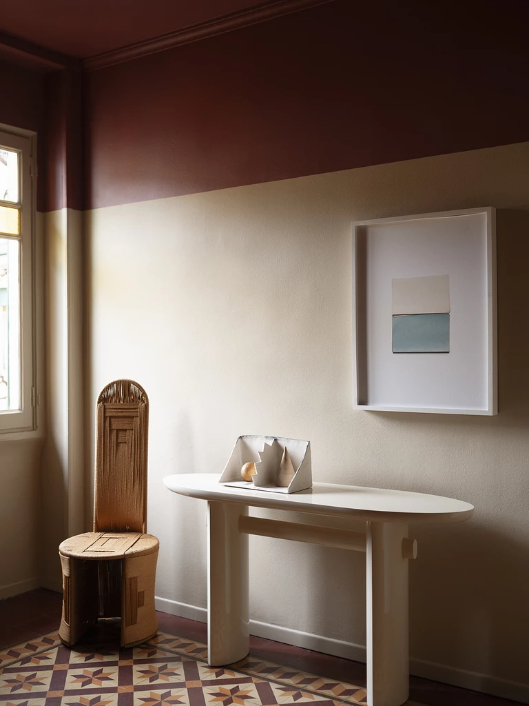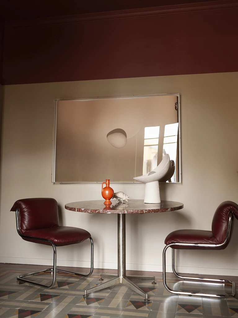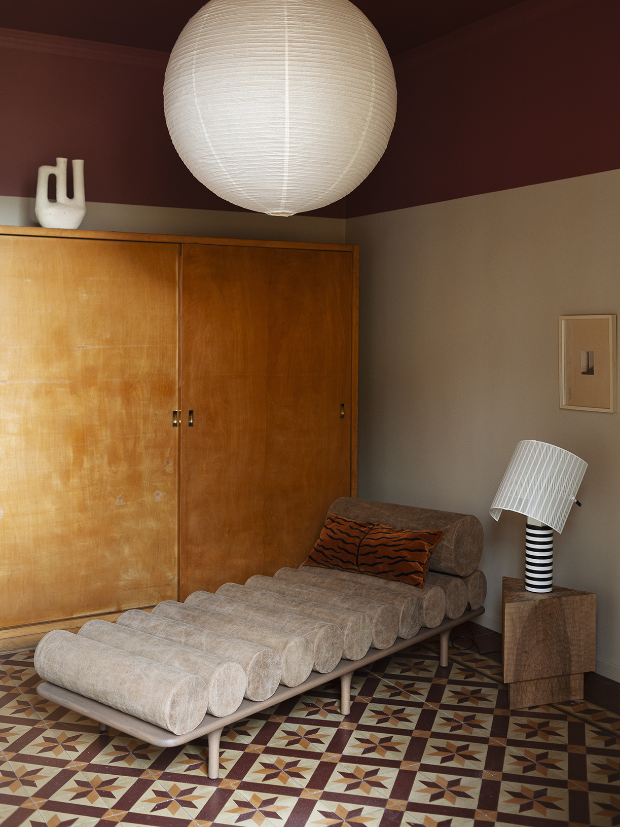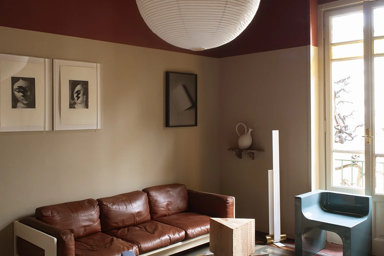 Mieszkanie z lat 30. zostało zaprojektowane z poszanowaniem charakteru architektury, w której się znajduje. Jednocześnie projektantki Arianna Lelli Mami oraz Chiara Di Pinto, założycielki Studiopepe, nadały mu wyrazistą i współczesną strukturę. We wnętrzu dominują głębokie odcienie burgundu i ciepłego orzecha, tworzące spójną, przytulną oprawę dla mebli i detali.