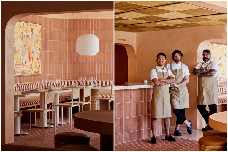 To wnętrze jest jak ciepłe powitanie: od progu czekają na nas łososiowe ściany, podłoga z terakoty i delikatnie różowy kamień. Wśród naturalnych materiałów i wielu odcieni czerwieni kryje się azjatycka restauracja Light Years zaprojektowana przez australijską pracownię Studio Plenty.