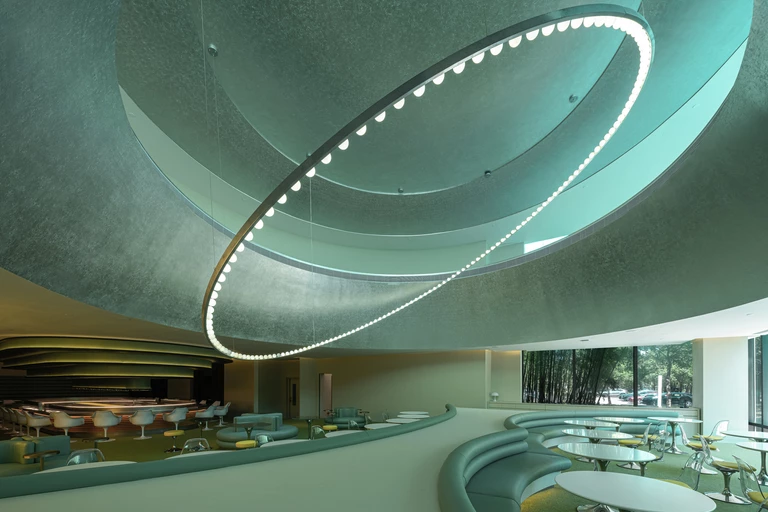 Park Zaawansowanych Technologii Zhangjiang w Pudong w Szanghaju, znany jako chińska „Dolina Krzemowa”, mieści w sobie centra nowoczesnych branż. Znajduje się tam także utrzymana w futurystycznym stylu restauracja „ATLATL” projektu pracowni Various Associates. Przyglądamy się jej wyjątkowemu wnętrzu!