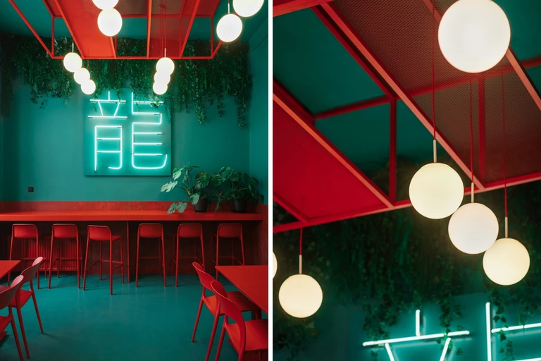Motyw przewodni restauracji to kontrast dwóch kolorów  czerwonego i zielonego. Istotnym elementem jest przy tym oświetlenie. Inwestorom zależało na tym, aby nawiązać do nocnego street foodu. Z tego względu we wnętrzu restauracji pojawiły się neony
