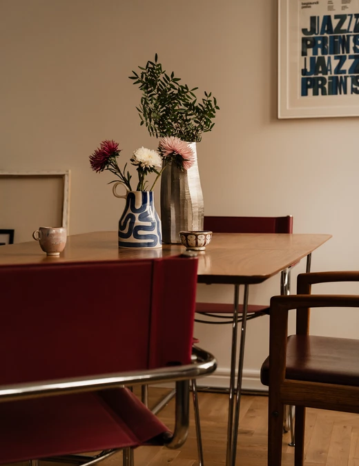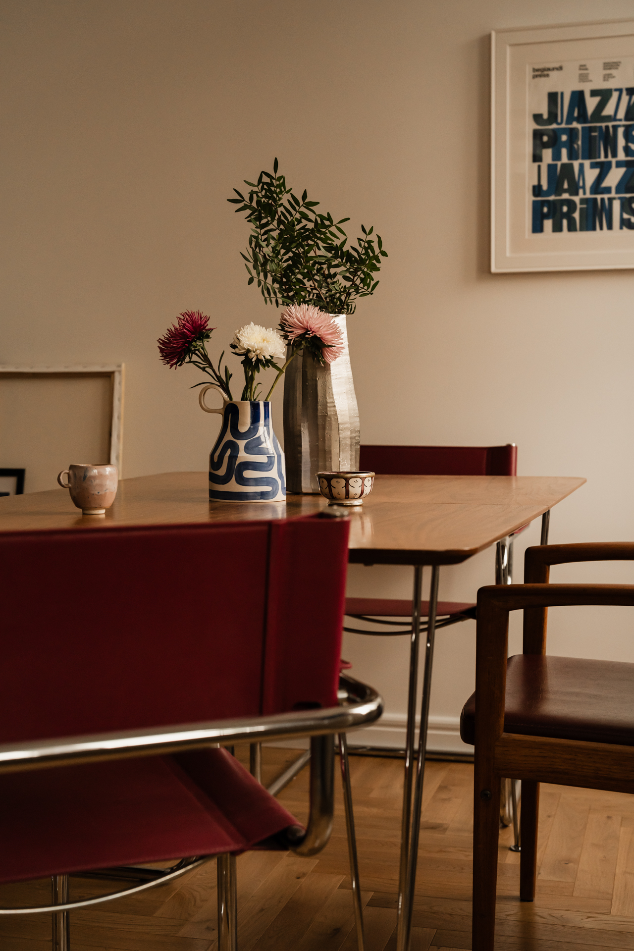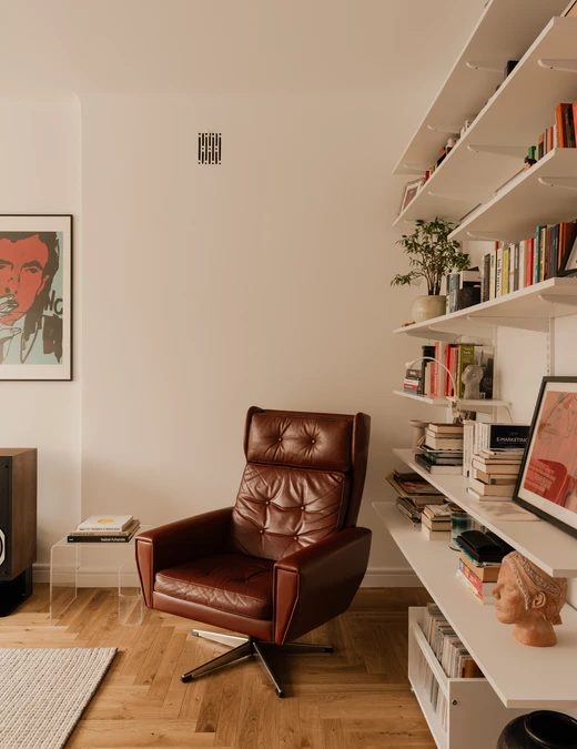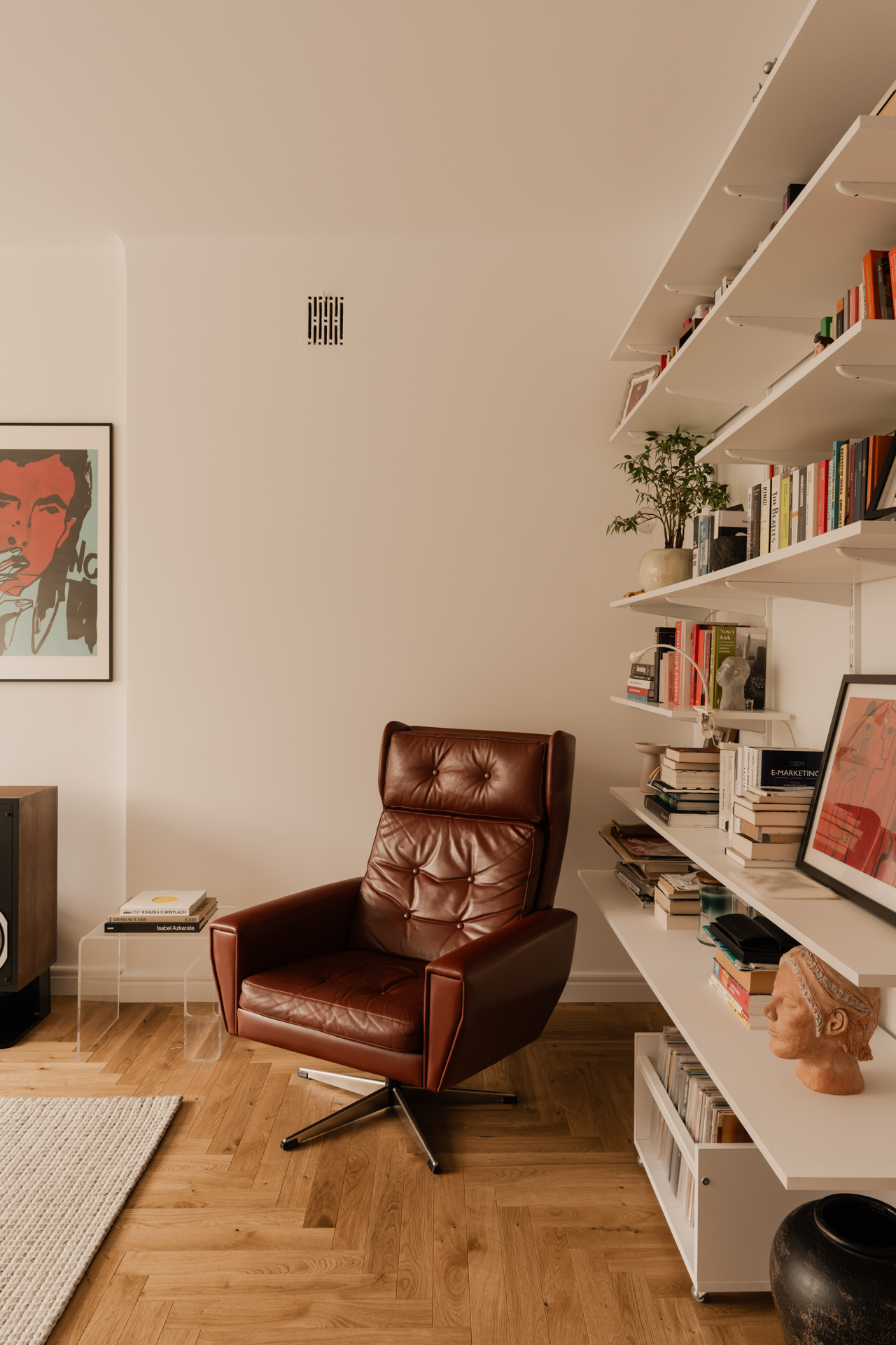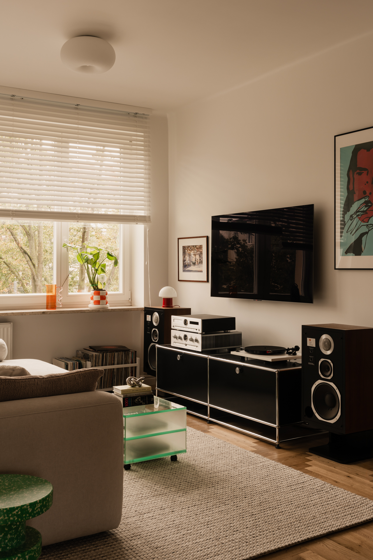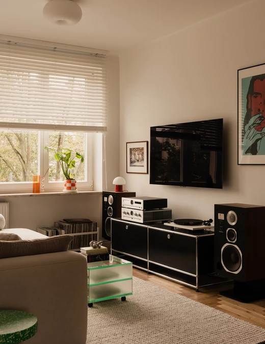 „Zamiast pustego minimalizmu wolimy wnętrza, w których coś się dzieje. Z książkami, winylami, sztuką - z rzeczami, które mają duszę” – wspominają właściciele, a więc nie mogło także zabraknąć przedmiotów osobistych, które nadają wnętrzu emocjonalny wymiar. To m.in. plakat Nicka Cave’a, obrazy przyjaciół, praca Kamila Lacha, baskijska rzeźba Iñigo Arregi czy akwarela przedstawiająca ulicę, przy której para mieszkała kiedyś w Hiszpanii. Wszystkie te elementy tworzą wielowarstwową opowieść o życiu. „Estetyka i przedmioty mają dla nas znaczenie. Gromadzimy te rzeczy, które coś o nas mówią” – podsumowują.