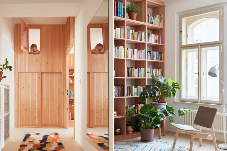Zestaw startowy: rodzice, dwójka dzieci i 63 metry kwadratowe. Do tego mnóstwo potrzeb i nieunikniona zmiana układu starego, kamienicznego wnętrza. Atutem w tym praskim mieszkaniu okazała się wysokość pomieszczeń, którą architektki z pracowni Plus One Architects przekuły w atut projektu.