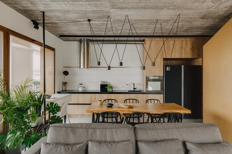Mieszkanie dla rodziny wcale nie musi być jasne i pastelowe. Lech Moczulski oraz Przemysław Nowak z pracowni „Mili Młodzi Ludzie” w projekcie „Syta” udowodnili, że można stworzyć funkcjonalną przestrzeń także przy zastosowaniu odważniejszych rozwiązań. Wnętrze z betonową posadzką, słupami żelbetonowymi, nieotynkowanymi ścianami i sufitami? Tak też może wyglądać rodzinny dom, w którym chce się zamieszkać!