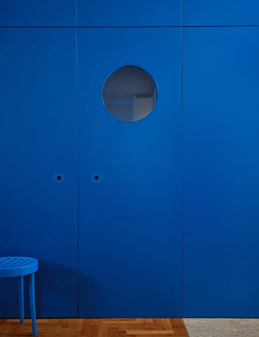 Do pokoi dzieci wchodzi się przez dużą, niebieską szafę, co zostało zainspirowane cyklem powieści C.S. Lewisa „Opowieści z Narnii”. „Ta niezwykła szafa ma sprzyjać pobudzaniu wyobraźni dzieci, metaforycznie przenosić je do innego świata. Jest swego rodzaju filtrem między częścią dzienną apartamentu a ich pokojami” – opisują zabieg projektanci.