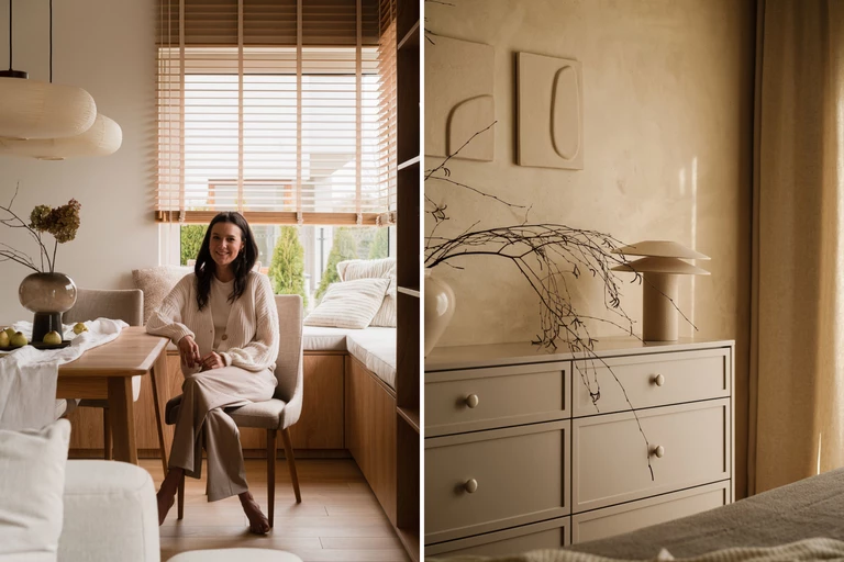 Dom, który dziś Wam prezentujemy, ma około 140 m2 powierzchni i należy do młodego małżeństwa z dzieckiem i dwoma puchatymi kotami. Za projekt jego wnętrza odpowiada Karina Roman, założycielka pracowni P/ART. Projektantka wykreowała przestrzeń opartą na naturalnych materiałach i barwach, wśród których dominują odcienie beżu, brązu i ciepłej bieli.