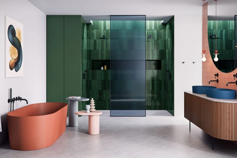 Coraz więcej osób decyduje się też na wzbogacanie neutralnej bazy swoich wnętrz o intensywne akcenty kolorystyczne. Popularność zyskują odcienie żółci i pomarańcz, które dodają energii i poprawiają nastrój. Oranż świetnie prezentuje się na tle klasycznej szarości, różu lub błękitu. Takie oryginalne połączenia kolorów pozwolą na stworzenie eklektycznej i odważnej przestrzeni. Ostatnio renesans przeżywa pełen geometrycznych kształtów i wielu kolorów styl Memphis, który wywodzi się z barwnych lat 80. Inspirowałam się nim, projektując kolekcję wanien i umywalek OVO M+ dla marki OMNIRES. Oprócz ponadczasowej bieli postawiłam też na sześć modnych, a zarazem niecodziennych, matowych odcieni natchnionych naturą.